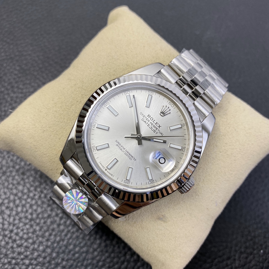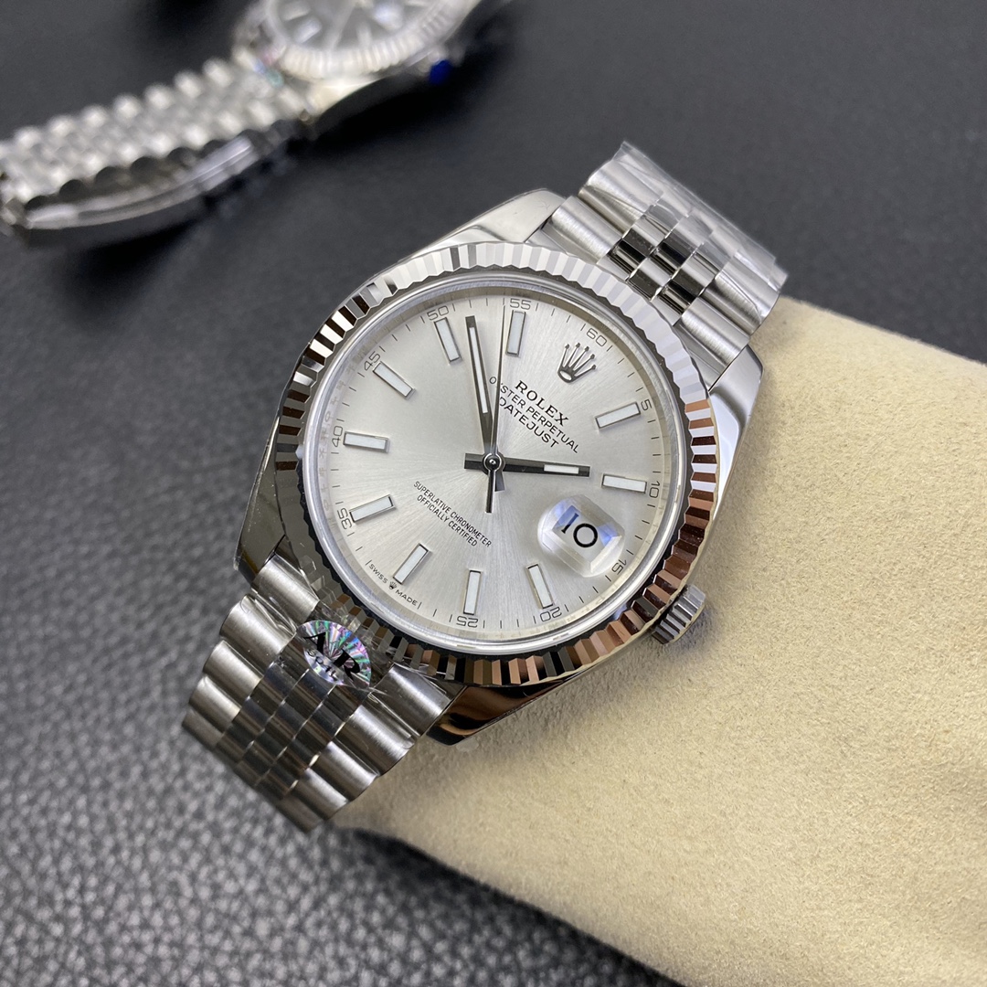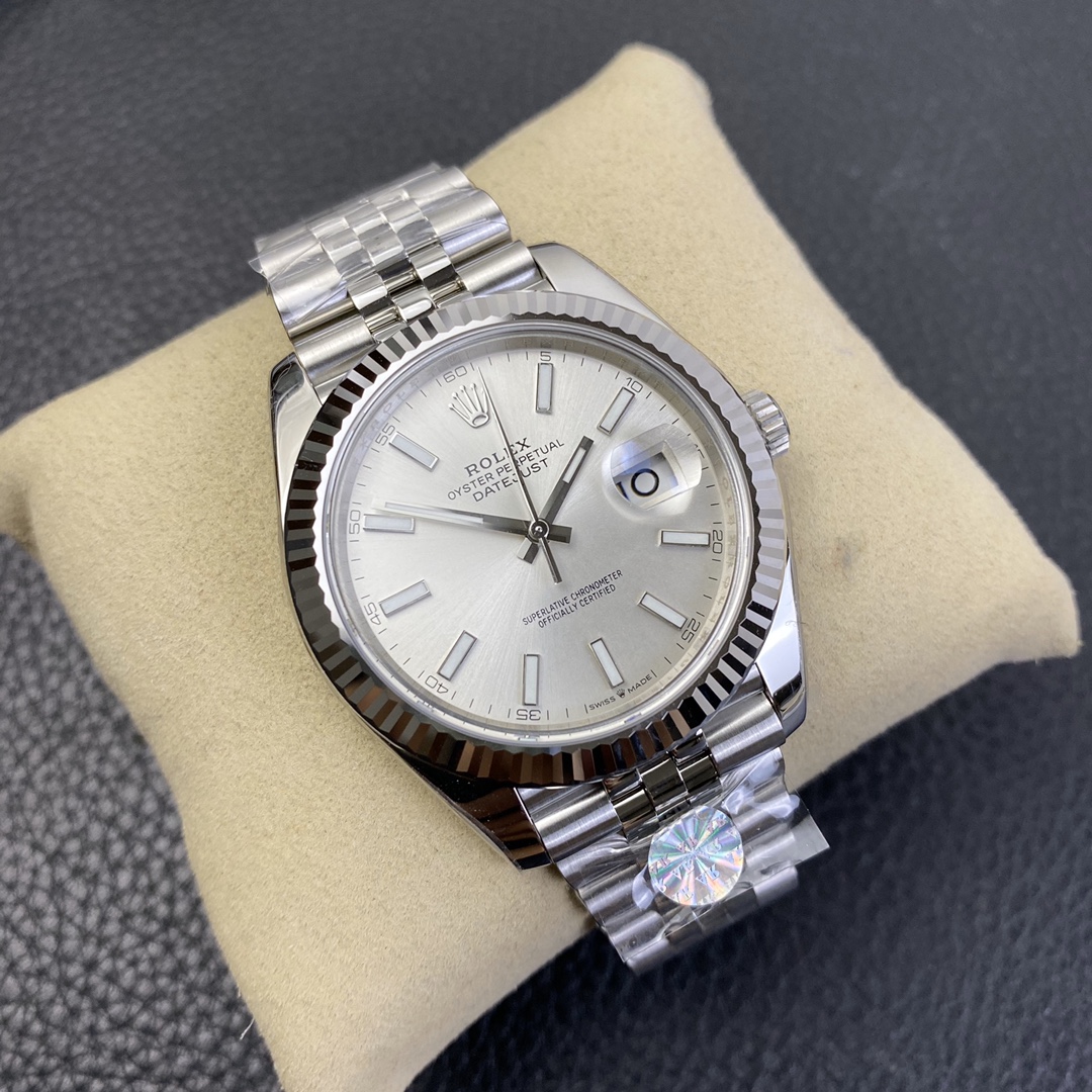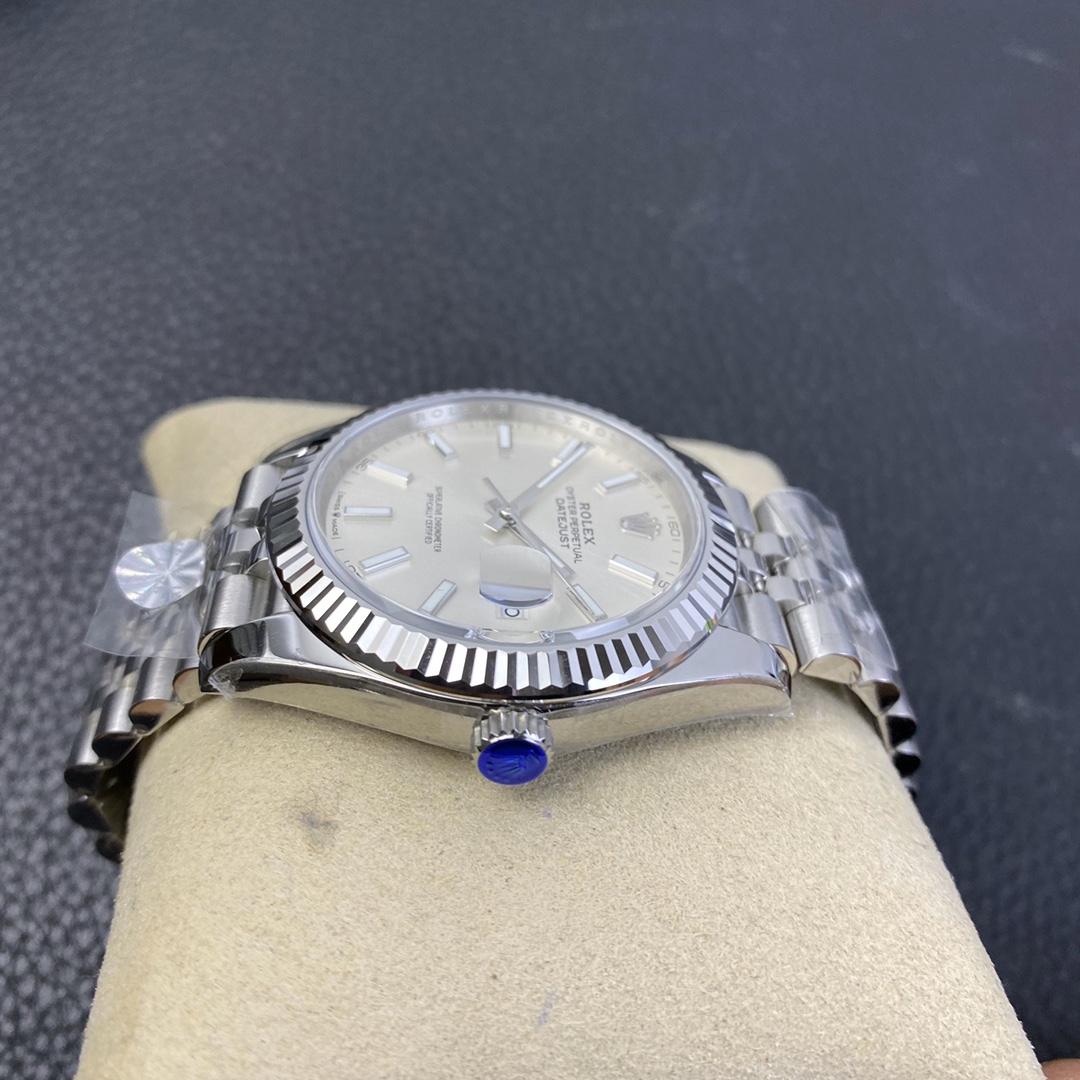This Rolex Datejust series watch showcases a combination of classic 41mm size and minimalist design, exuding a sense of fashion and power. It is equipped with a 2836 automatic mechanical movement to ensure precise and reliable time display. The watch features hour, minute, second, and calendar functions to meet your daily timekeeping needs. With a 50-meter waterproof performance, it is suitable for everyday waterproof requirements. The scratch-resistant blue crystal glass protects the dial and provides a clear view. The folding clasp design makes it convenient to wear and adjust the length of the strap, enhancing wearing comfort. This Rolex Datejust series watch combines classic aesthetics with practicality, making it an ideal choice for fashion enthusiasts.