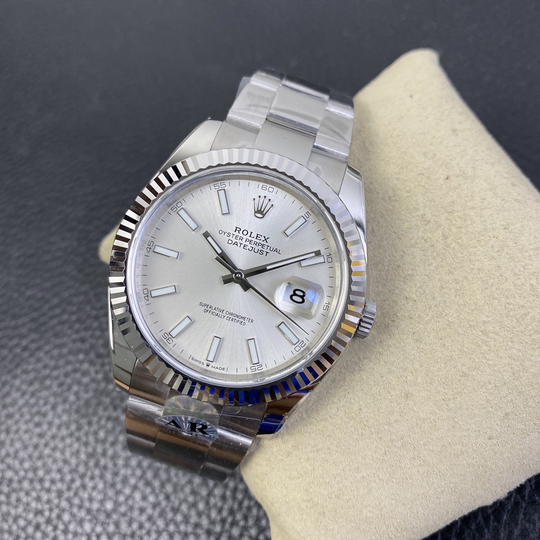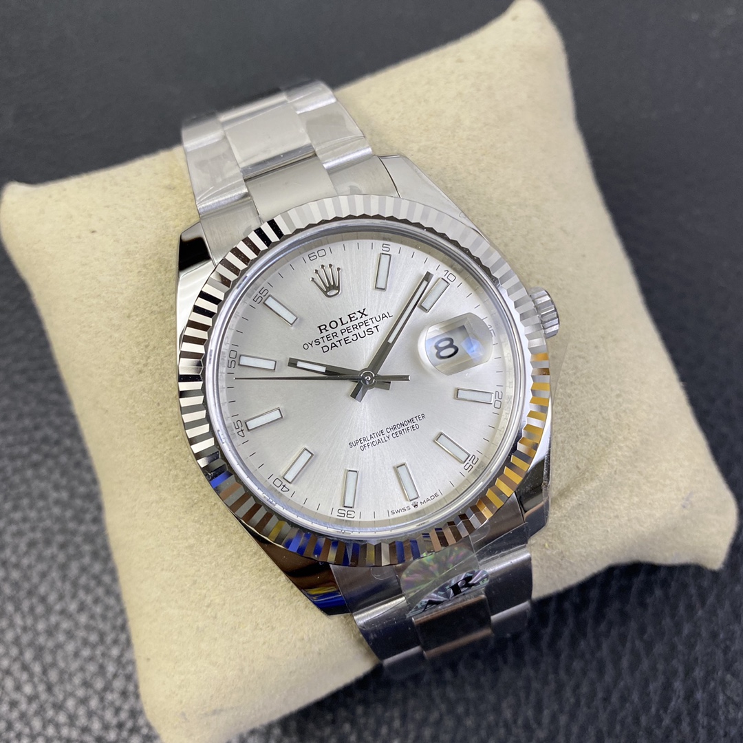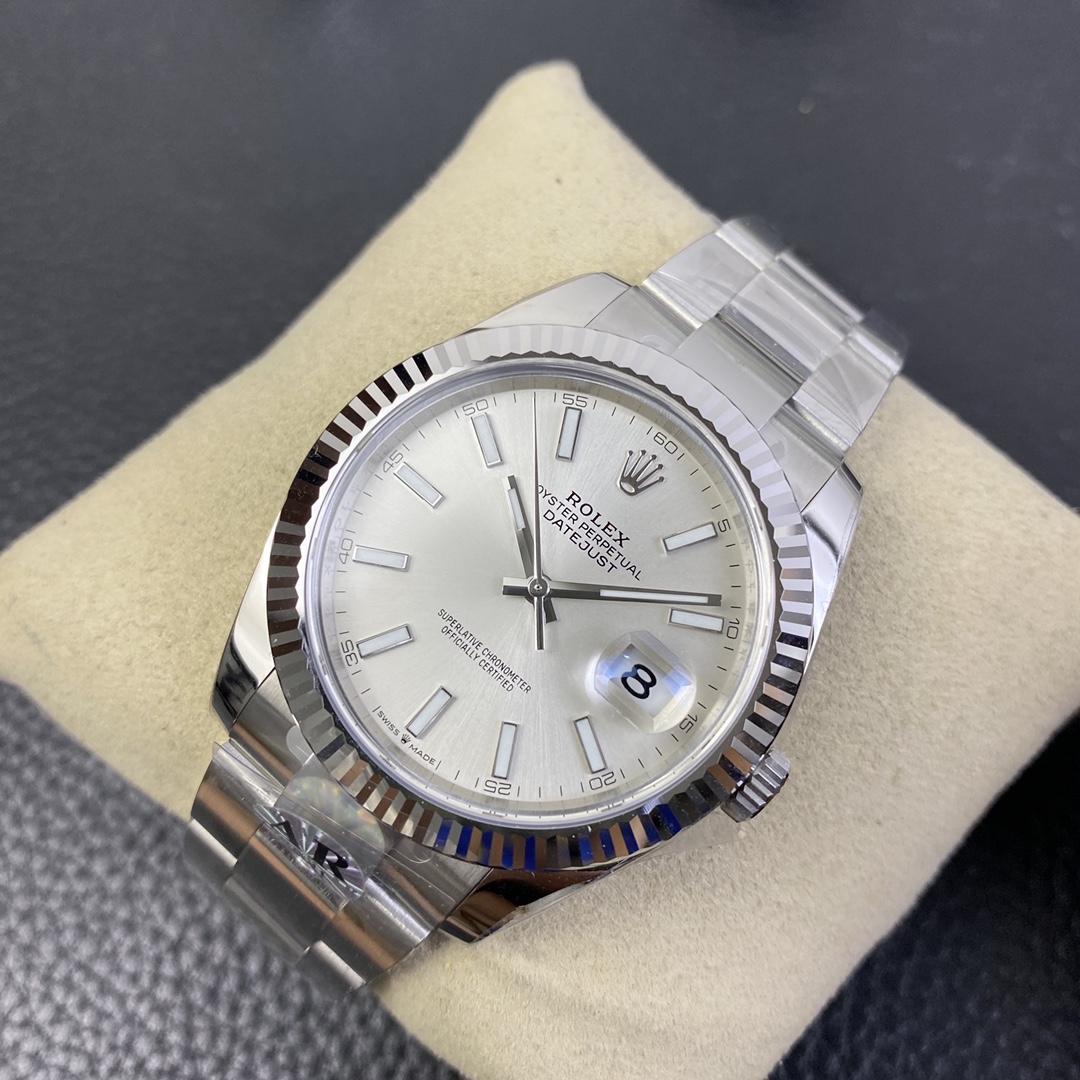 This Rolex Datejust series watch showcases a combination of classic 41mm size and minimalist design, exuding a sense of fashion and power. It is equipped with a 2836 automatic mechanical movement to ensure precise and reliable time display. The watch features hour, minute, second, and calendar functions to meet your daily timekeeping needs. With a 50-meter waterproof performance, it is suitable for everyday waterproof requirements. The scratch-resistant blue crystal glass protects the dial and provides a clear view. The folding clasp design makes it convenient to wear and adjust the length of the strap, enhancing wearing comfort. This Rolex Datejust series watch combines classic aesthetics with practicality, making it an ideal choice for fashion enthusiasts.