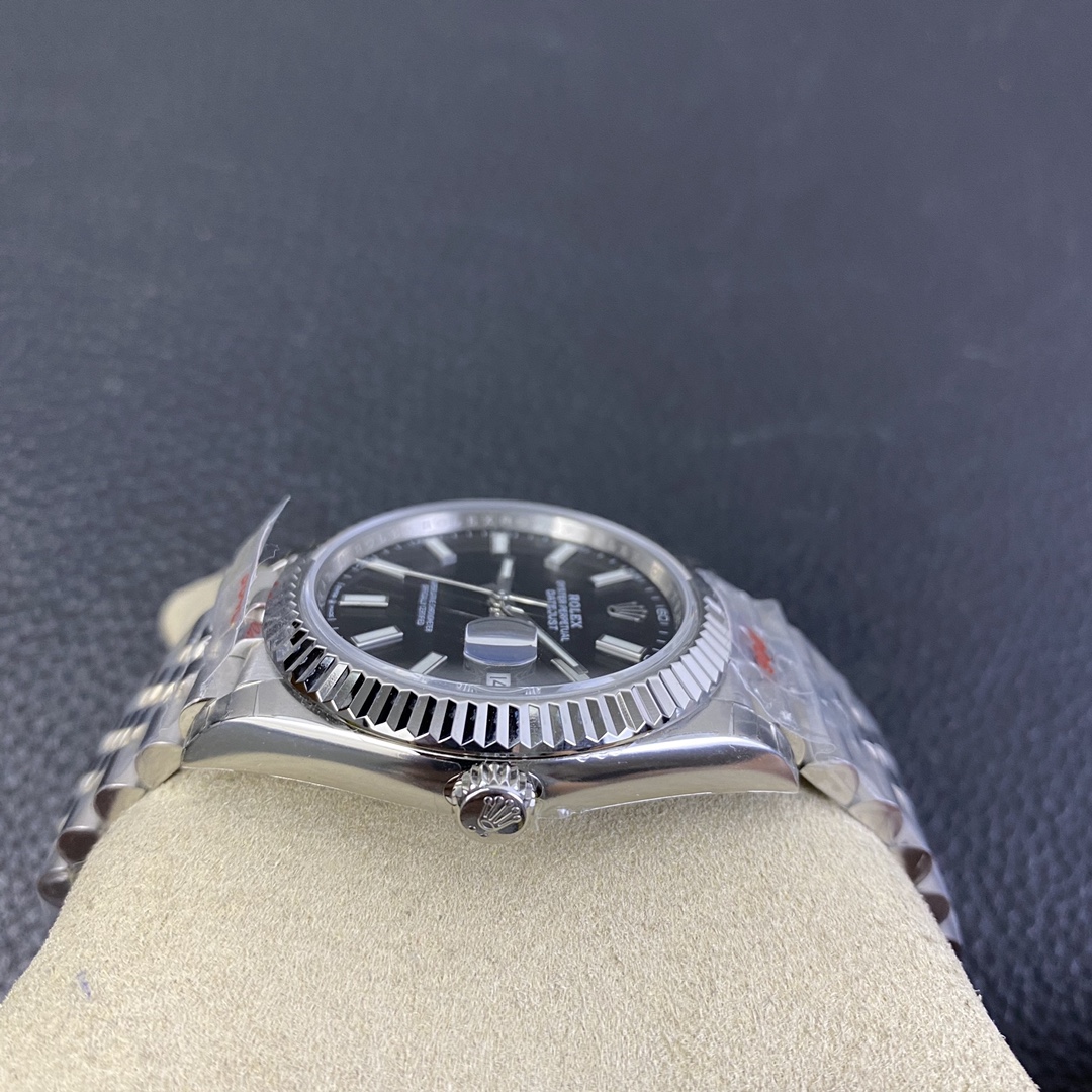 This Rolex Datejust series watch showcases a combination of classic 41mm size and minimalist design, exuding a sense of fashion and power. It is equipped with a 2836 automatic mechanical movement to ensure precise and reliable time display. The watch features hour, minute, second, and calendar functions to meet your daily timekeeping needs. With a 50-meter waterproof performance, it is suitable for everyday waterproof requirements. The scratch-resistant blue crystal glass protects the dial and provides a clear view. The folding clasp design makes it convenient to wear and adjust the length of the strap, enhancing wearing comfort. This Rolex Datejust series watch combines classic aesthetics with practicality, making it an ideal choice for fashion enthusiasts.