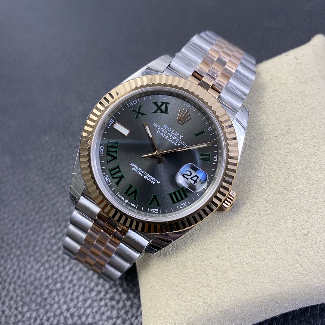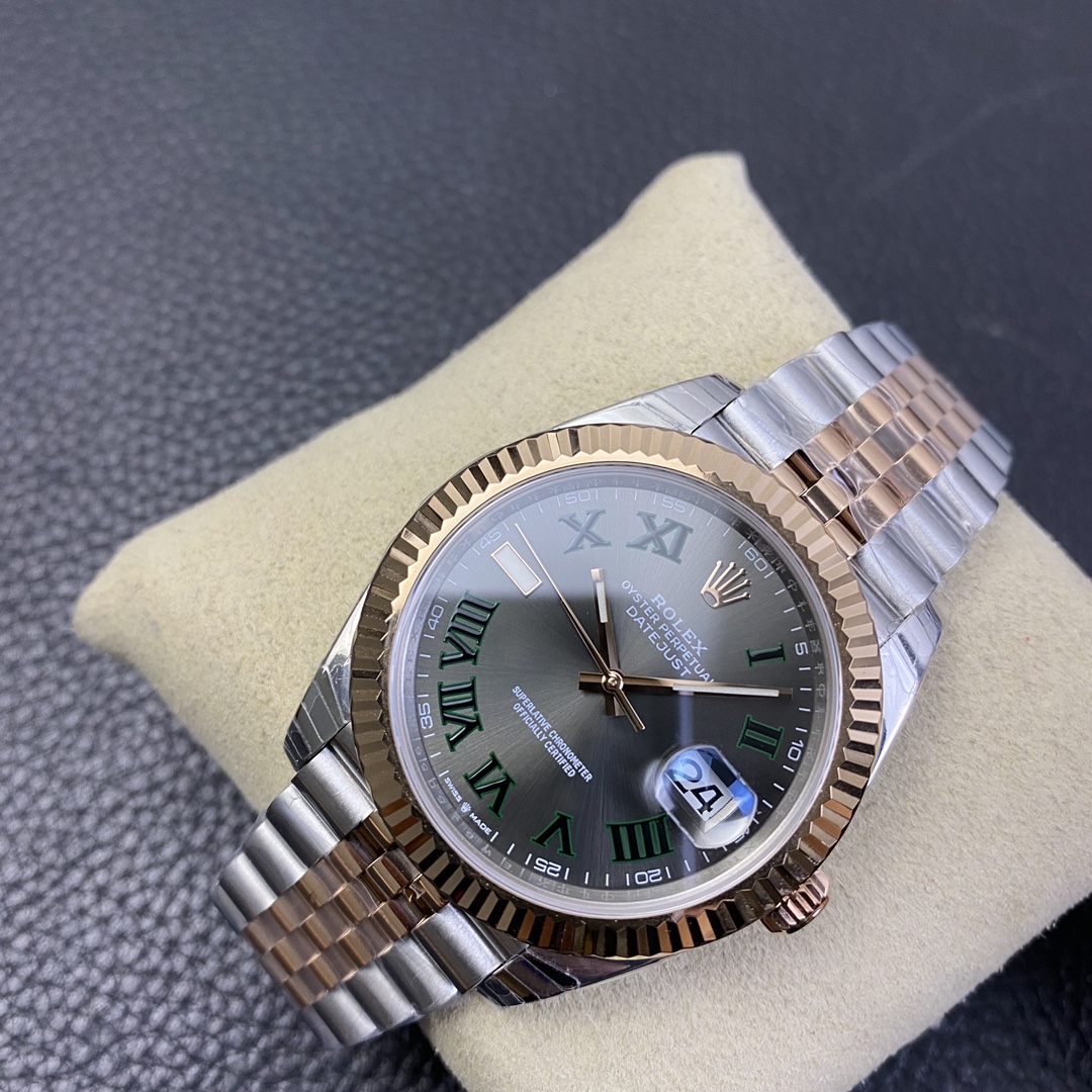This Rolex Datejust series watch showcases a combination of classic 41mm size and minimalist design, exuding a sense of fashion and power. It is equipped with a 2836 automatic mechanical movement to ensure precise and reliable time display. The watch features hour, minute, second, and calendar functions to meet your daily timekeeping needs. With a 50-meter waterproof performance, it is suitable for everyday waterproof requirements. The scratch-resistant blue crystal glass protects the dial and provides a clear view. The folding clasp design makes it convenient to wear and adjust the length of the strap, enhancing wearing comfort. This Rolex Datejust series watch combines classic aesthetics with practicality, making it an ideal choice for fashion enthusiasts.