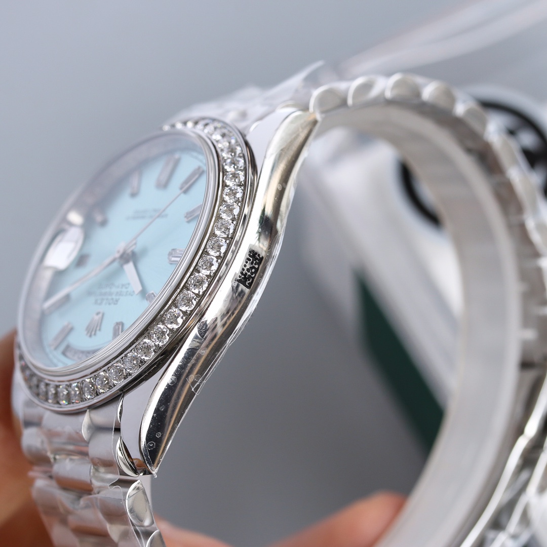 This Rolex Datejust series watch showcases a combination of classic 41mm size and minimalist design, exuding a sense of fashion and power. It is equipped with a 2836 automatic mechanical movement to ensure precise and reliable time display. The watch features hour, minute, second, and calendar functions to meet your daily timekeeping needs. With a 50-meter waterproof performance, it is suitable for everyday waterproof requirements. The scratch-resistant blue crystal glass protects the dial and provides a clear view. The folding clasp design makes it convenient to wear and adjust the length of the strap, enhancing wearing comfort. This Rolex Datejust series watch combines classic aesthetics with practicality, making it an ideal choice for fashion enthusiasts.