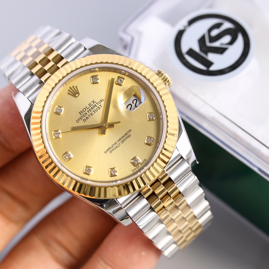 This Rolex Datejust series watch showcases a combination of classic 41mm size and minimalist design, exuding a sense of fashion and power. It is equipped with a 2836 automatic mechanical movement to ensure precise and reliable time display. The watch features hour, minute, second, and calendar functions to meet your daily timekeeping needs. With a 50-meter waterproof performance, it is suitable for everyday waterproof requirements. The scratch-resistant blue crystal glass protects the dial and provides a clear view. The folding clasp design makes it convenient to wear and adjust the length of the strap, enhancing wearing comfort. This Rolex Datejust series watch combines classic aesthetics with practicality, making it an ideal choice for fashion enthusiasts.
