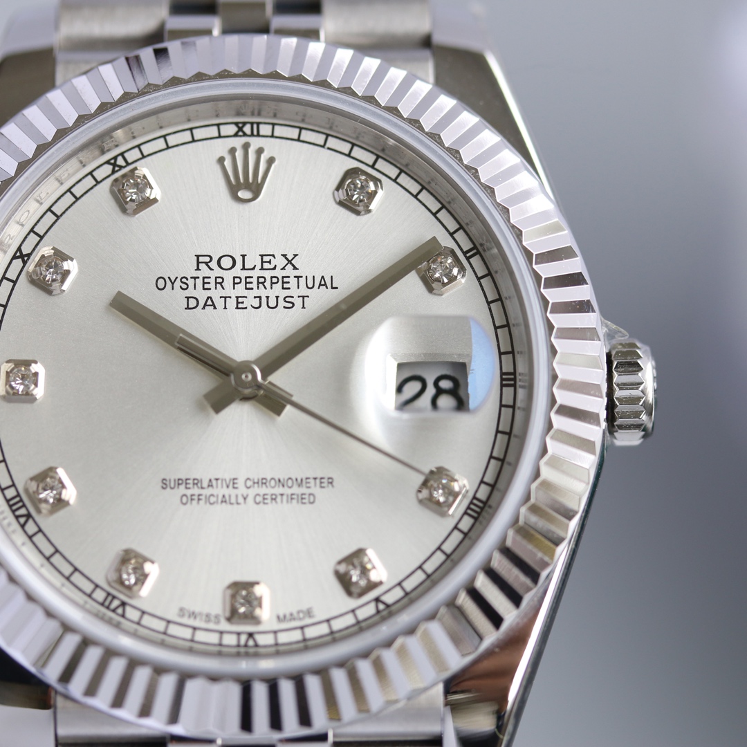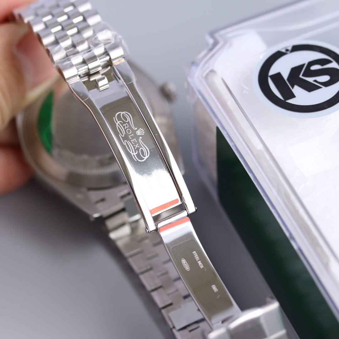 This Rolex Datejust series watch showcases a combination of classic 41mm size and minimalist design, exuding a sense of fashion and power. It is equipped with a 2836 automatic mechanical movement to ensure precise and reliable time display. The watch features hour, minute, second, and calendar functions to meet your daily timekeeping needs. With a 50-meter waterproof performance, it is suitable for everyday waterproof requirements. The scratch-resistant blue crystal glass protects the dial and provides a clear view. The folding clasp design makes it convenient to wear and adjust the length of the strap, enhancing wearing comfort. This Rolex Datejust series watch combines classic aesthetics with practicality, making it an ideal choice for fashion enthusiasts.