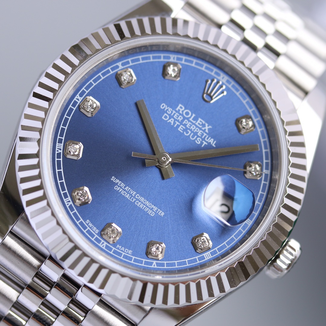 This Rolex Datejust series watch showcases a combination of classic 41mm size and minimalist design, exuding a sense of fashion and power. It is equipped with a 2836 automatic mechanical movement to ensure precise and reliable time display. The watch features hour, minute, second, and calendar functions to meet your daily timekeeping needs. With a 50-meter waterproof performance, it is suitable for everyday waterproof requirements. The scratch-resistant blue crystal glass protects the dial and provides a clear view. The folding clasp design makes it convenient to wear and adjust the length of the strap, enhancing wearing comfort. This Rolex Datejust series watch combines classic aesthetics with practicality, making it an ideal choice for fashion enthusiasts.