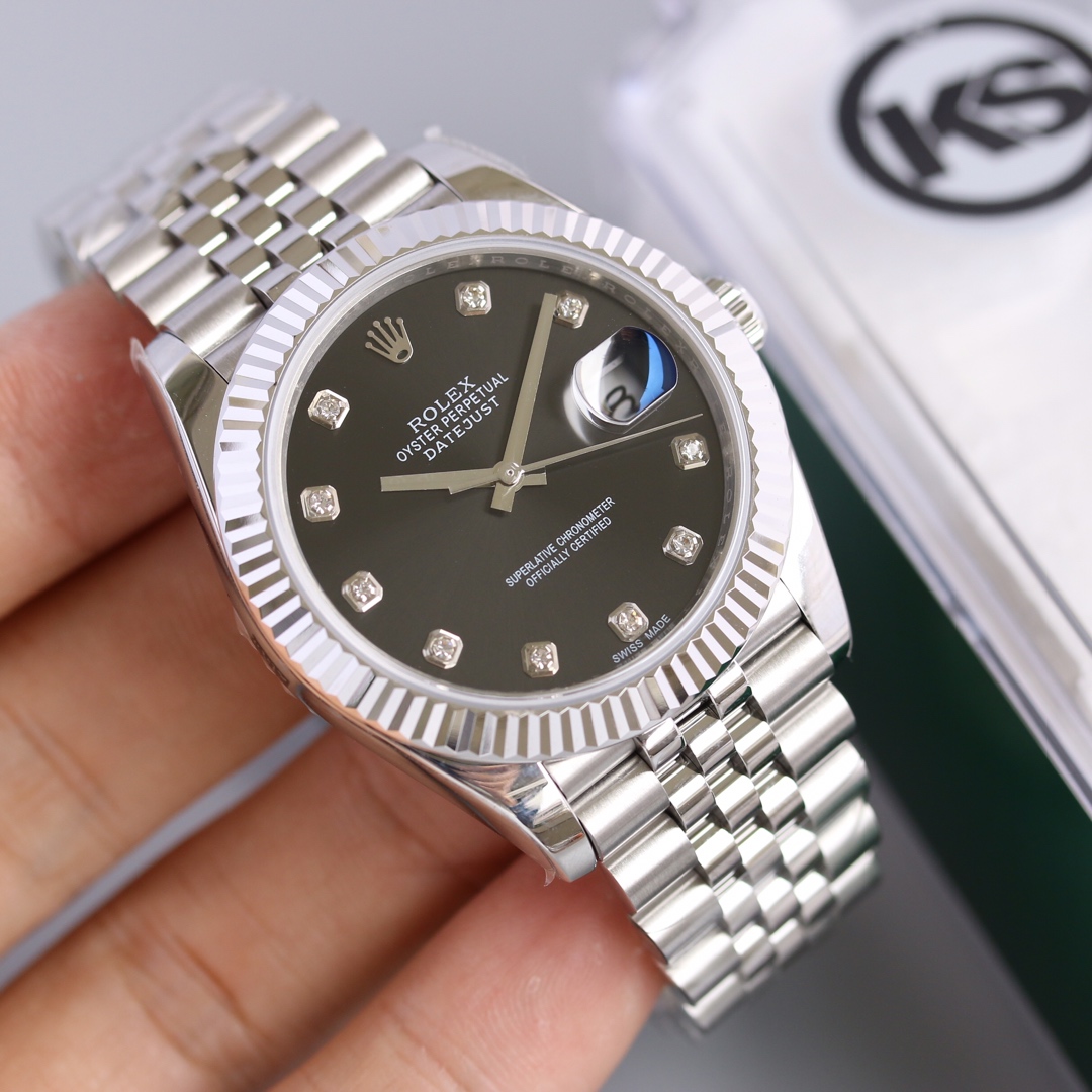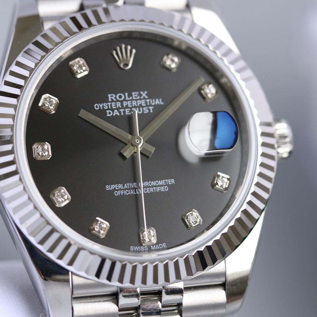 This Rolex Datejust series watch showcases a combination of classic 41mm size and minimalist design, exuding a sense of fashion and power. It is equipped with a 2836 automatic mechanical movement to ensure precise and reliable time display. The watch features hour, minute, second, and calendar functions to meet your daily timekeeping needs. With a 50-meter waterproof performance, it is suitable for everyday waterproof requirements. The scratch-resistant blue crystal glass protects the dial and provides a clear view. The folding clasp design makes it convenient to wear and adjust the length of the strap, enhancing wearing comfort. This Rolex Datejust series watch combines classic aesthetics with practicality, making it an ideal choice for fashion enthusiasts.