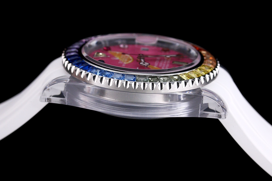 The Rolex Glass Crystal series watch, with its 40mm size and exquisite design, showcases a sense of fashion and power. Equipped with the Swiss ETA2824 automatic movement, ensuring precise and reliable time display. The watch features hour, minute, and second functions, offering simplicity and practicality. With a water resistance of 100 meters, the watch is suitable for daily waterproof needs. The sapphire crystal glass protects the dial and provides a clear view. The folding clasp design facilitates wearing and adjustment of the bracelet length, enhancing comfort. The 316L stainless steel case exhibits durability and high quality. This Rolex Glass Crystal series watch combines sophistication and practicality, making it an ideal choice for fashion enthusiasts.