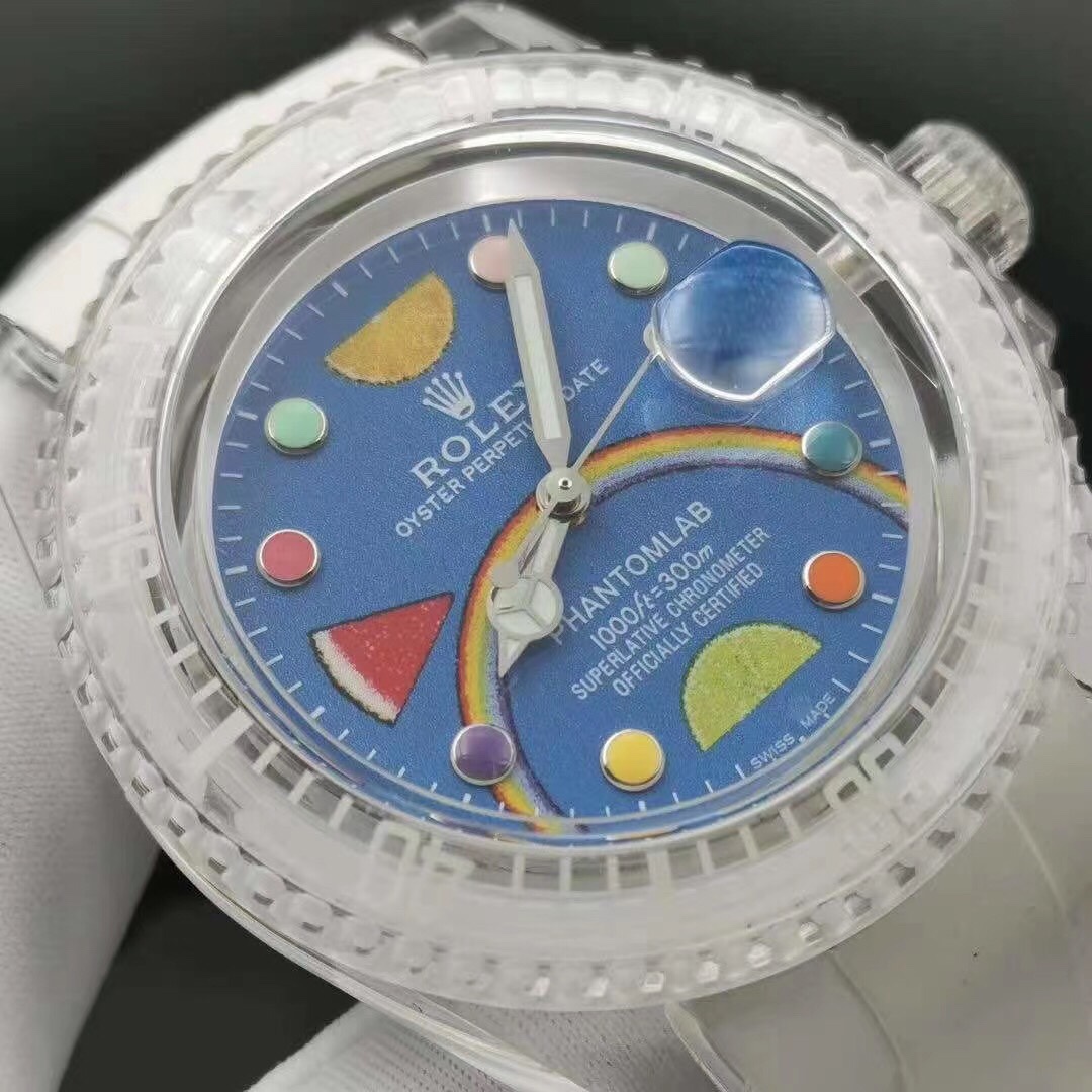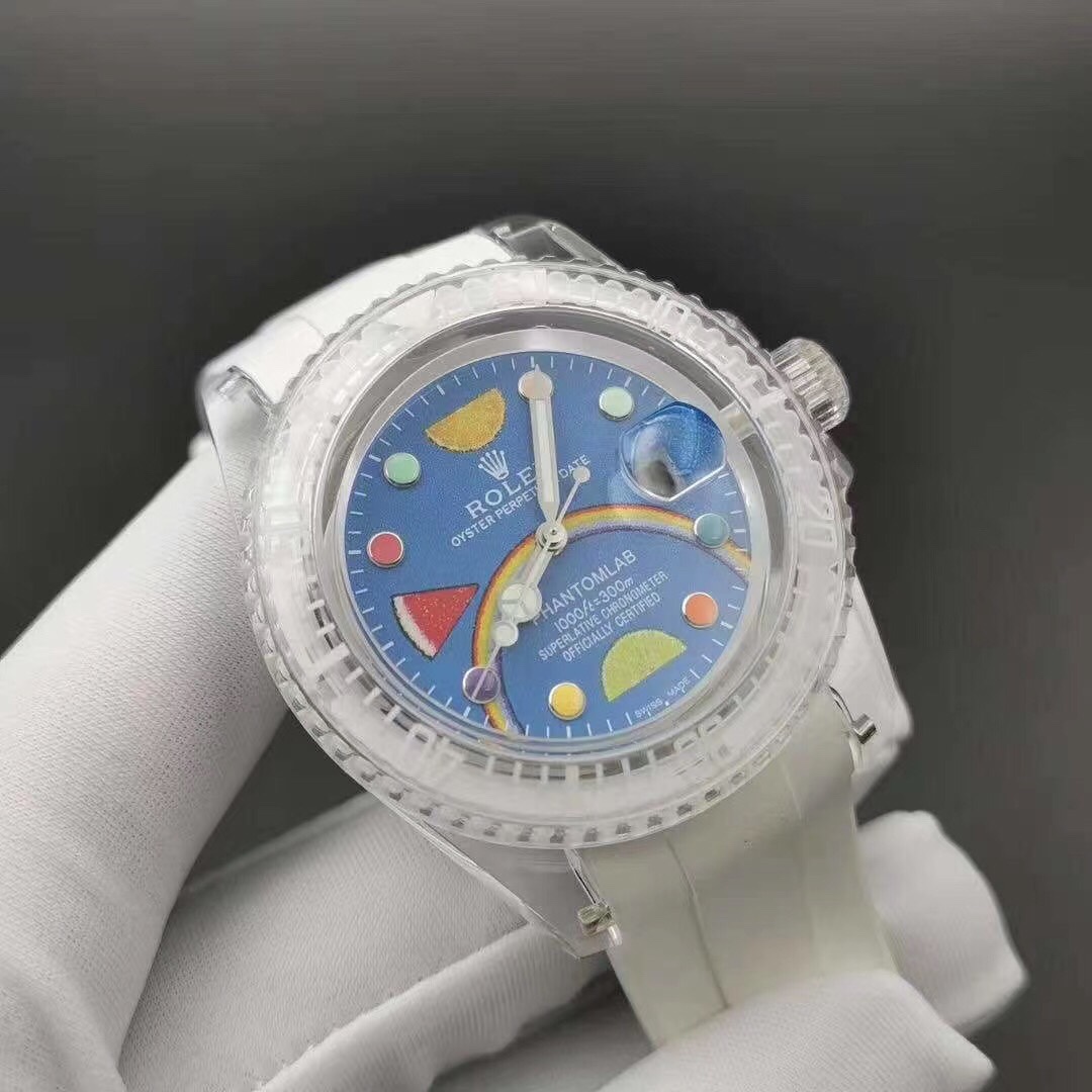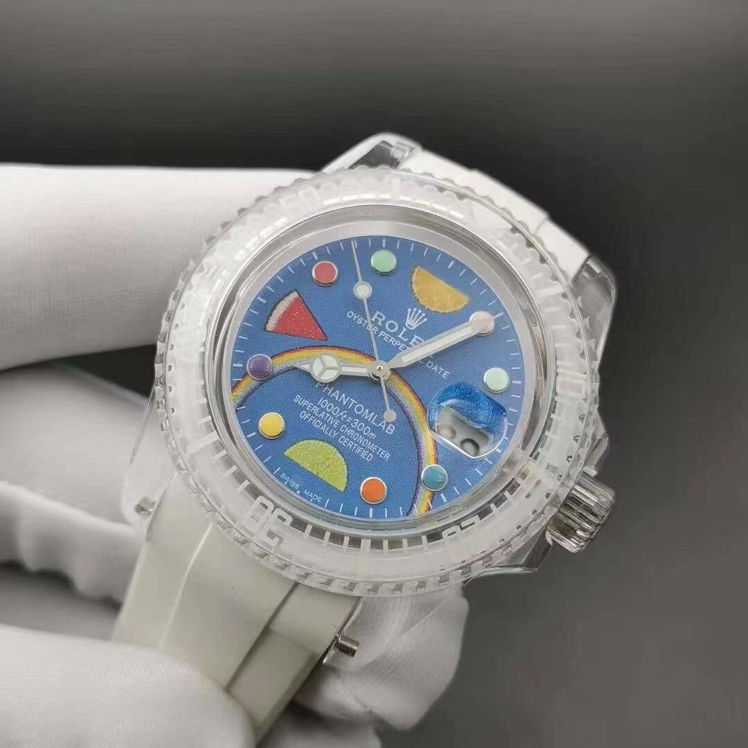 The Rolex Glass Crystal series watch, with its 40mm size and exquisite design, showcases a sense of fashion and power. Equipped with the Swiss ETA2824 automatic movement, ensuring precise and reliable time display. The watch features hour, minute, and second functions, offering simplicity and practicality. With a water resistance of 100 meters, the watch is suitable for daily waterproof needs. The sapphire crystal glass protects the dial and provides a clear view. The folding clasp design facilitates wearing and adjustment of the bracelet length, enhancing comfort. The 316L stainless steel case exhibits durability and high quality. This Rolex Glass Crystal series watch combines sophistication and practicality, making it an ideal choice for fashion enthusiasts.