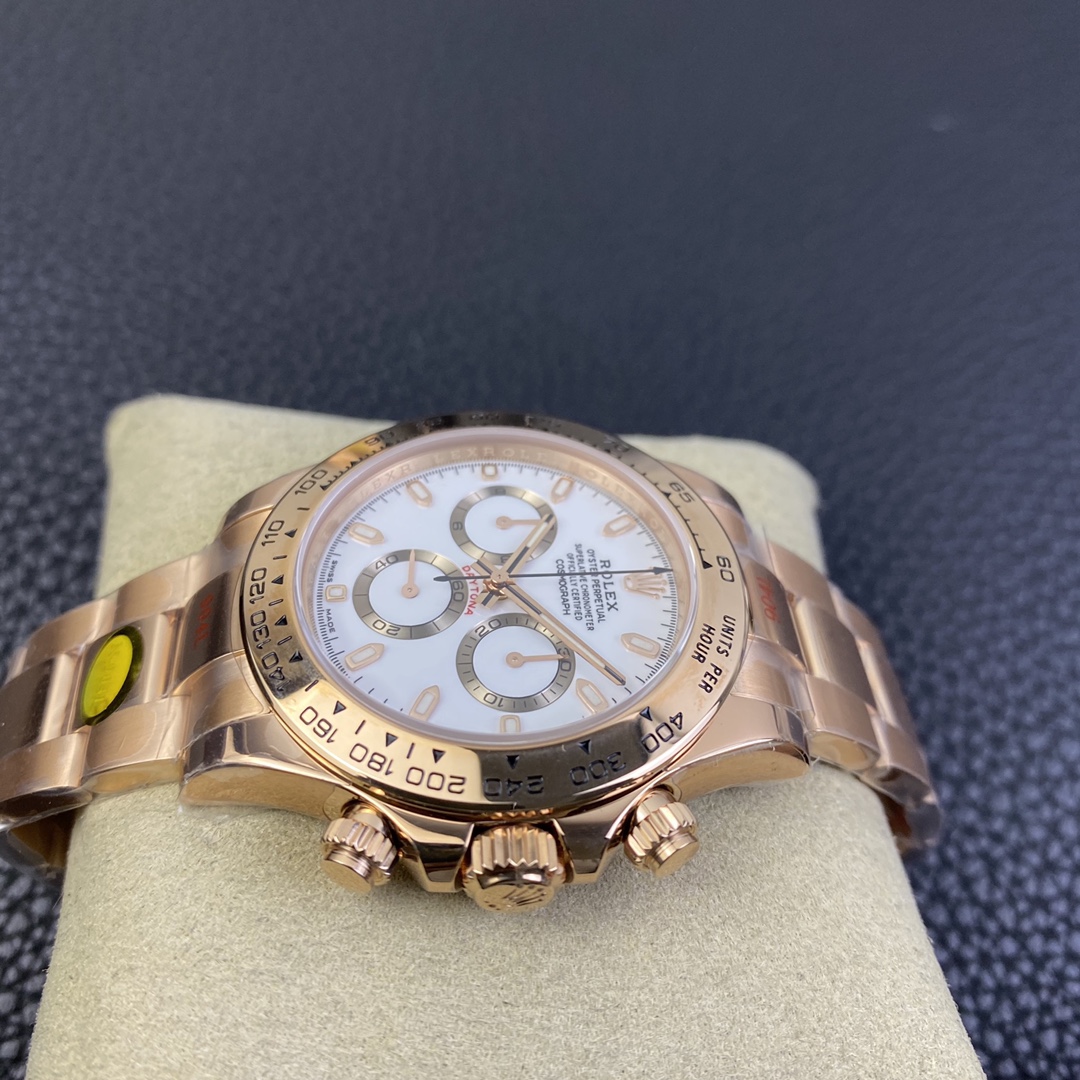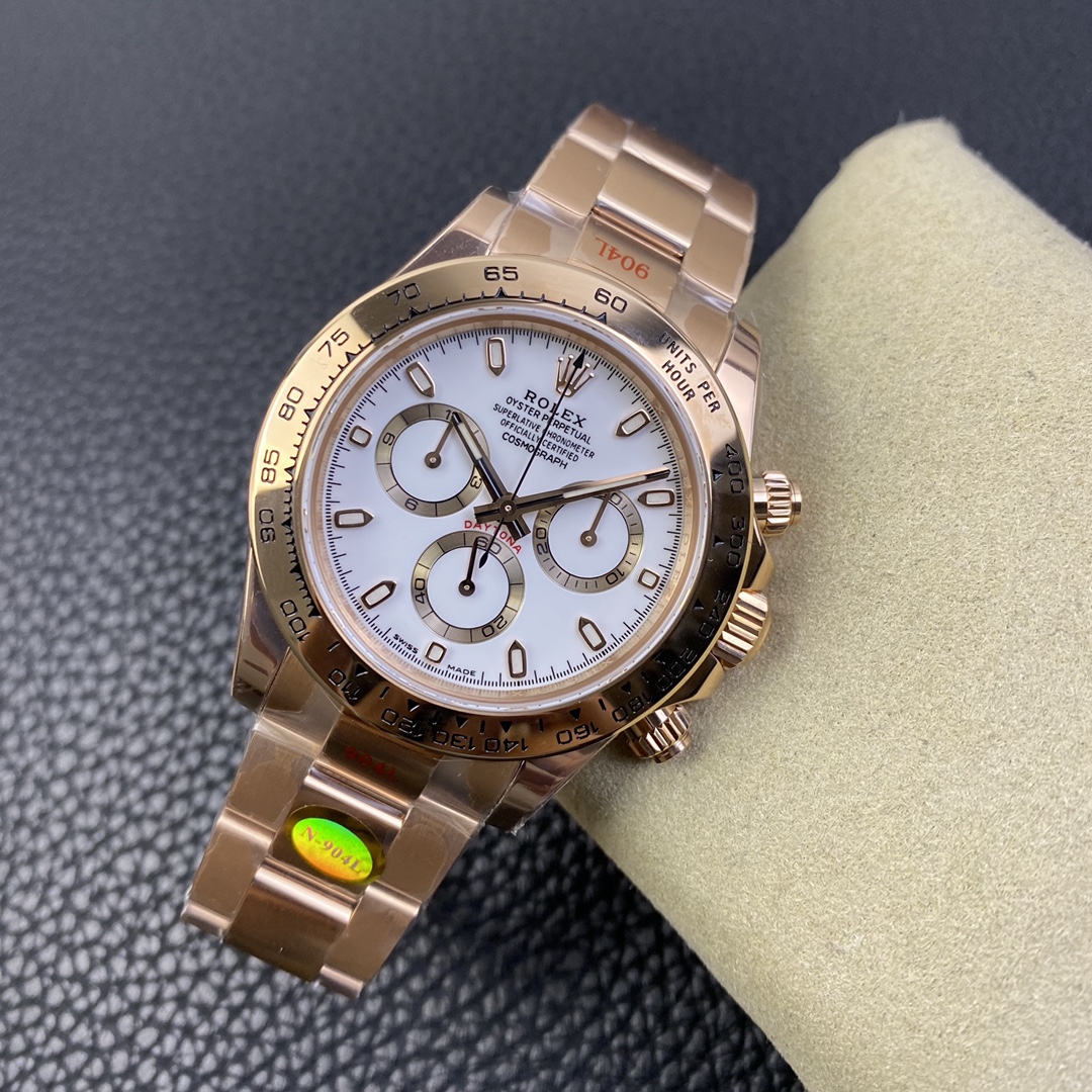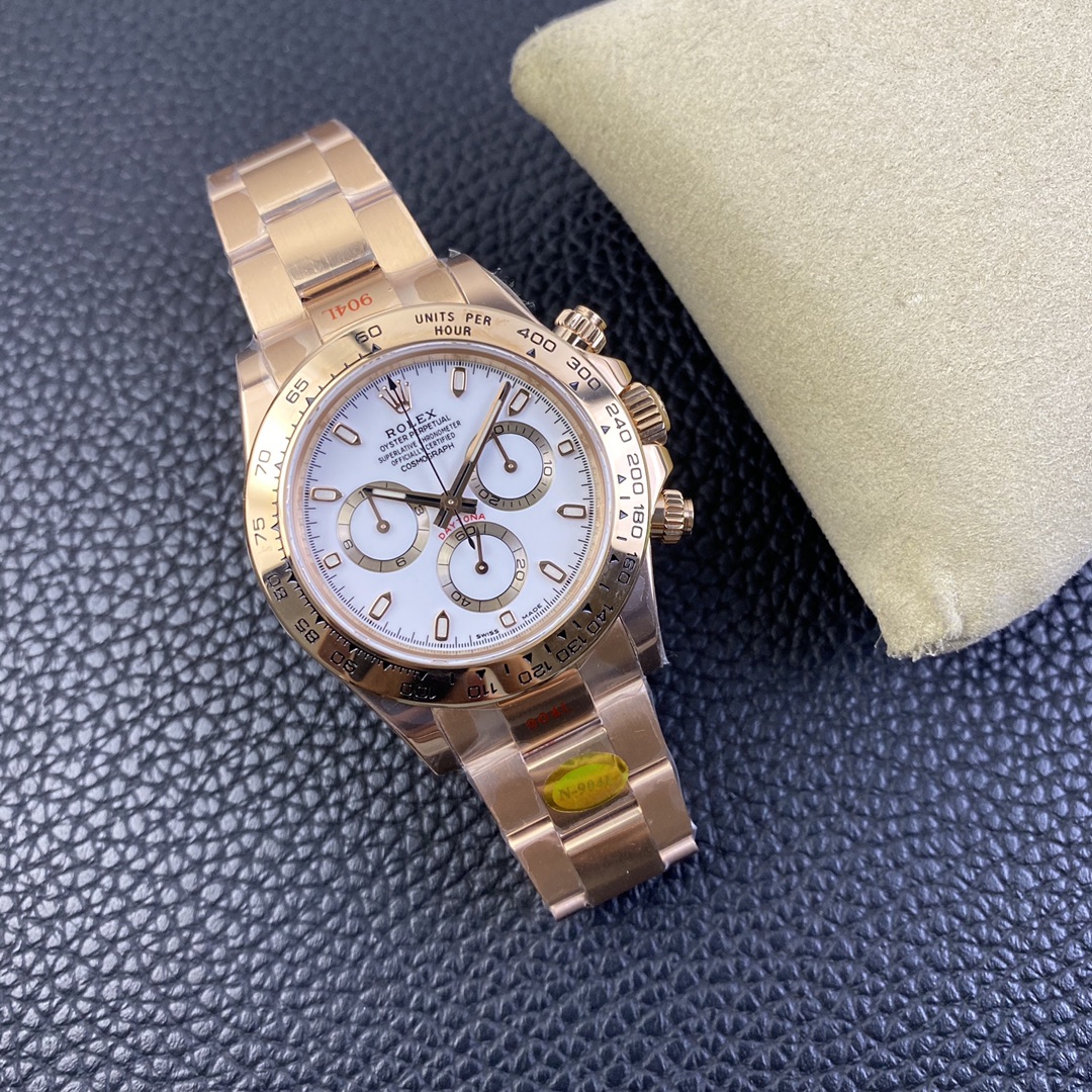 This Rolex Daytona series wristwatch showcases a sense of stability and fashion with its 40mm x 12.6mm size and classic design. Equipped with a Swiss ETA4130 automatic mechanical movement, it ensures accurate and reliable time display. The watch features hour, minute, and second functions, as well as luminescent hands and markers for clear visibility even in the dark. The sapphire crystal glass protects the dial and provides a clear view. The folding clasp design makes it convenient to wear and adjust the bracelet length, adding to the comfort of wearing. The 904L stainless steel case showcases durability and high-quality craftsmanship. Equipped with a stainless steel bracelet, it presents a harmonious aesthetic. This Rolex Daytona series wristwatch, with its sporty style and exceptional performance, is an ideal choice for fashion enthusiasts who aspire to exceptional quality and unique style.