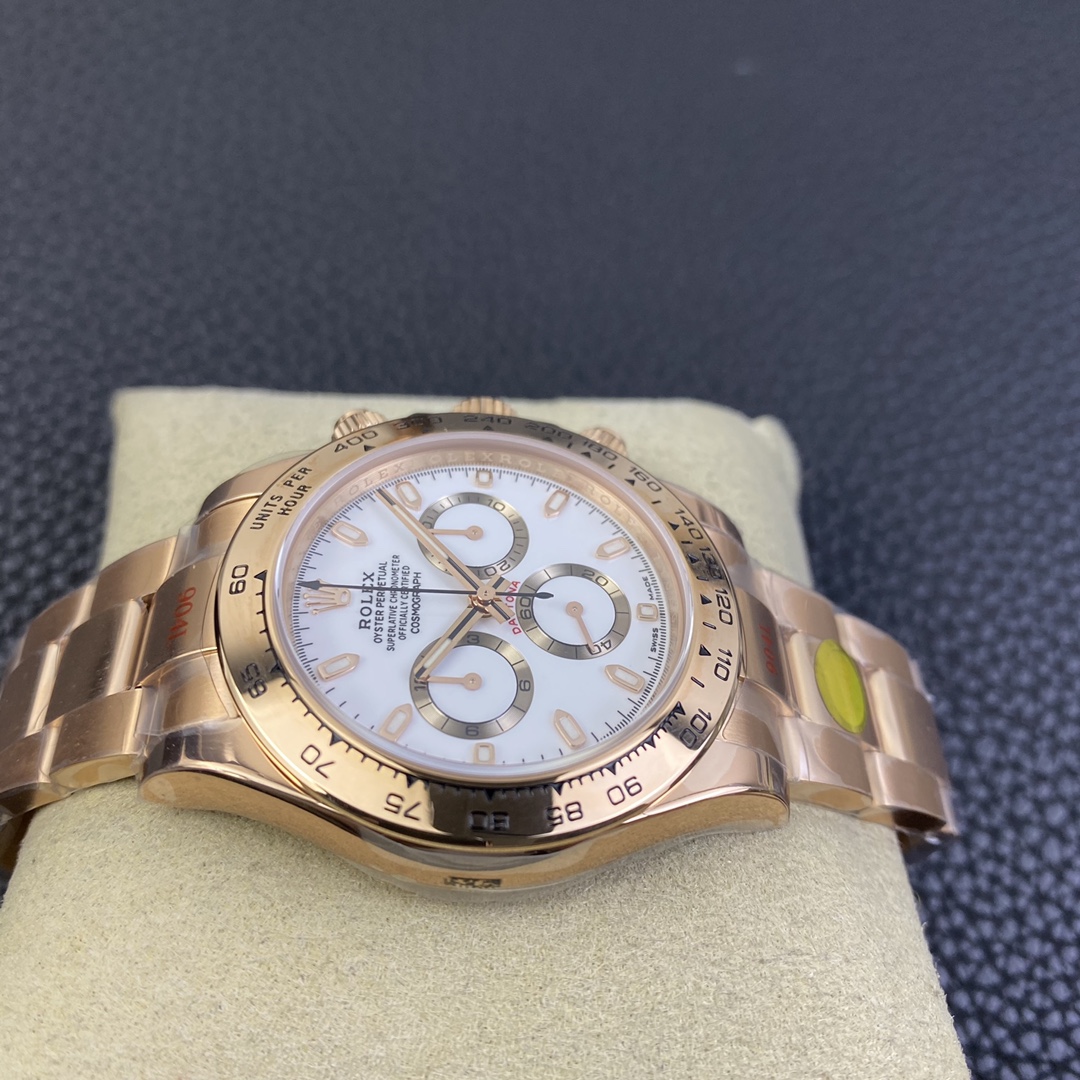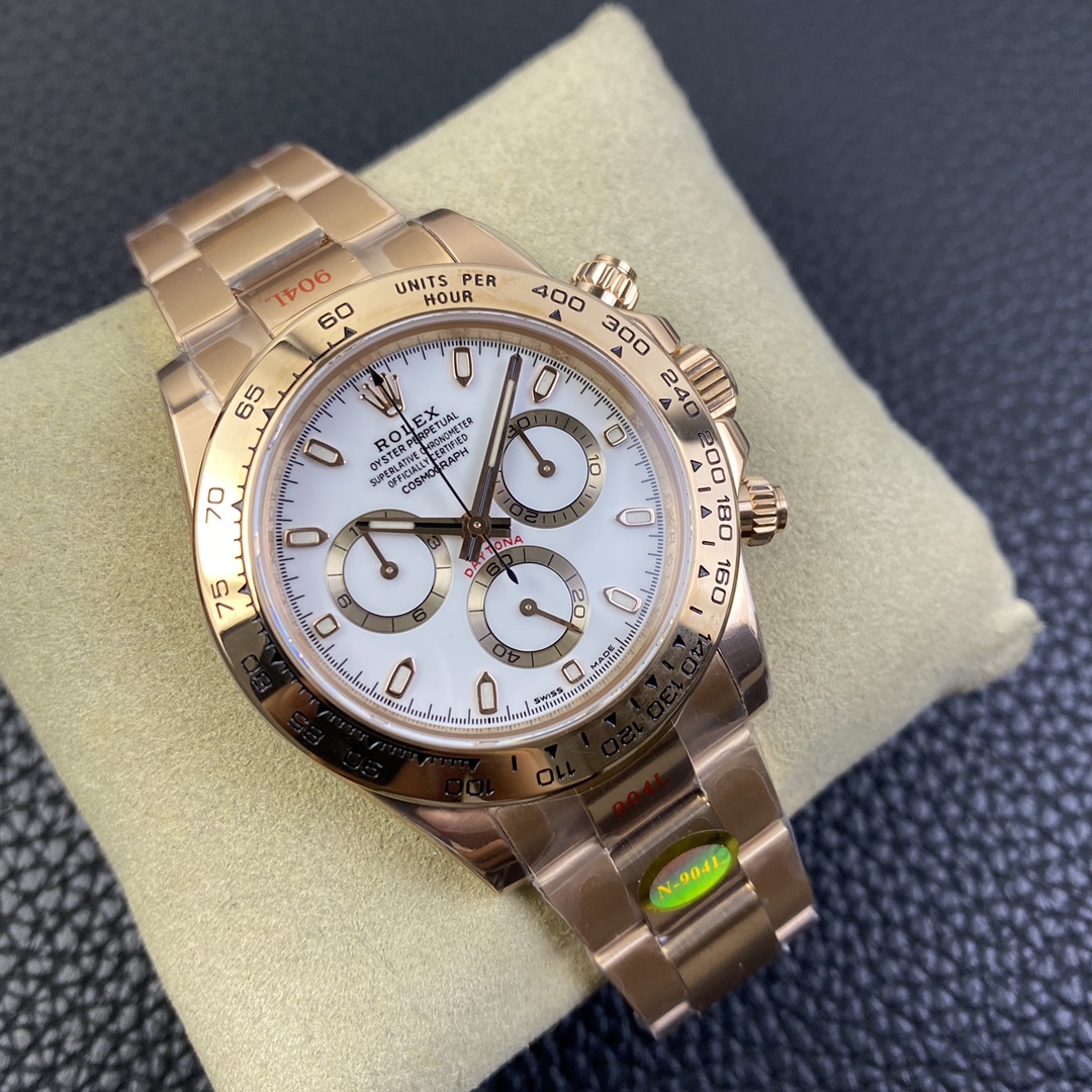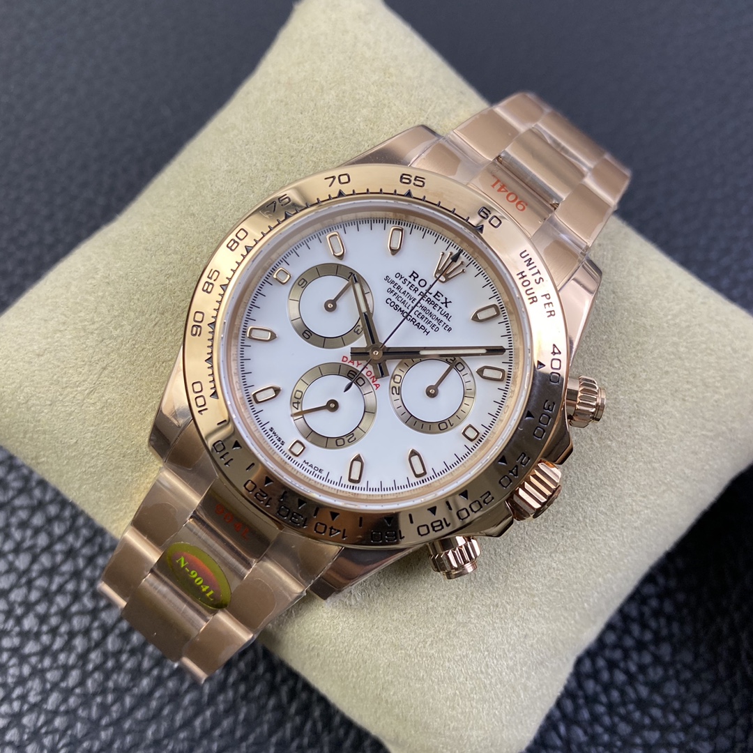 This Rolex Daytona series wristwatch showcases a sense of stability and fashion with its 40mm x 12.6mm size and classic design. Equipped with a Swiss ETA4130 automatic mechanical movement, it ensures accurate and reliable time display. The watch features hour, minute, and second functions, as well as luminescent hands and markers for clear visibility even in the dark. The sapphire crystal glass protects the dial and provides a clear view. The folding clasp design makes it convenient to wear and adjust the bracelet length, adding to the comfort of wearing. The 904L stainless steel case showcases durability and high-quality craftsmanship. Equipped with a stainless steel bracelet, it presents a harmonious aesthetic. This Rolex Daytona series wristwatch, with its sporty style and exceptional performance, is an ideal choice for fashion enthusiasts who aspire to exceptional quality and unique style.