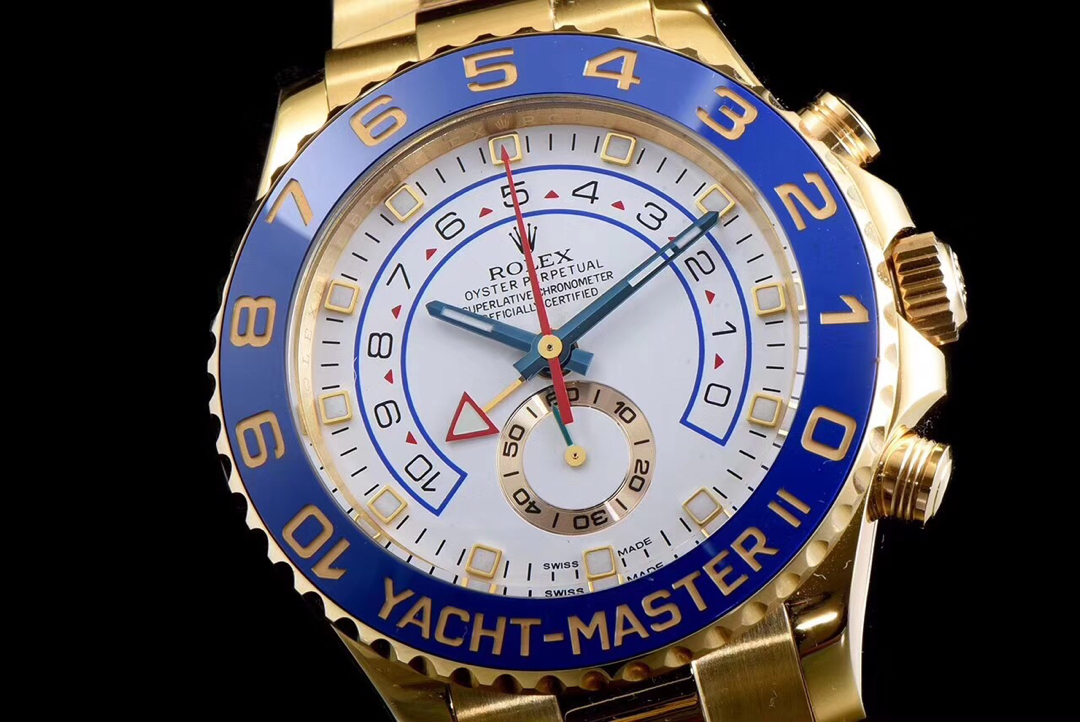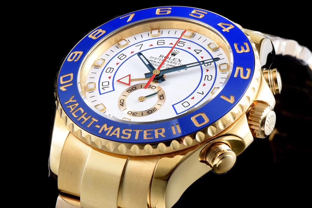 The Rolex Yacht-Master II watch combines a 44mm size with a luxurious sporty design, showcasing a bold and masculine character. It is equipped with a 7750 automatic movement, ensuring precise and reliable time display. The watch features hours, minutes, and seconds functions, allowing you to easily keep track of time. With a water resistance of 50 meters, the watch is suitable for daily waterproof needs. The sapphire crystal glass provides excellent scratch resistance and clear time display. It is designed with a folding clasp, adding comfort during wear. The stainless steel case and bracelet exhibit durability and high quality, highlighting Rolex’s craftsmanship and quality. This Rolex Yacht-Master II watch, combining luxury and sportiness, is an ideal choice for those who pursue fashion and quality.