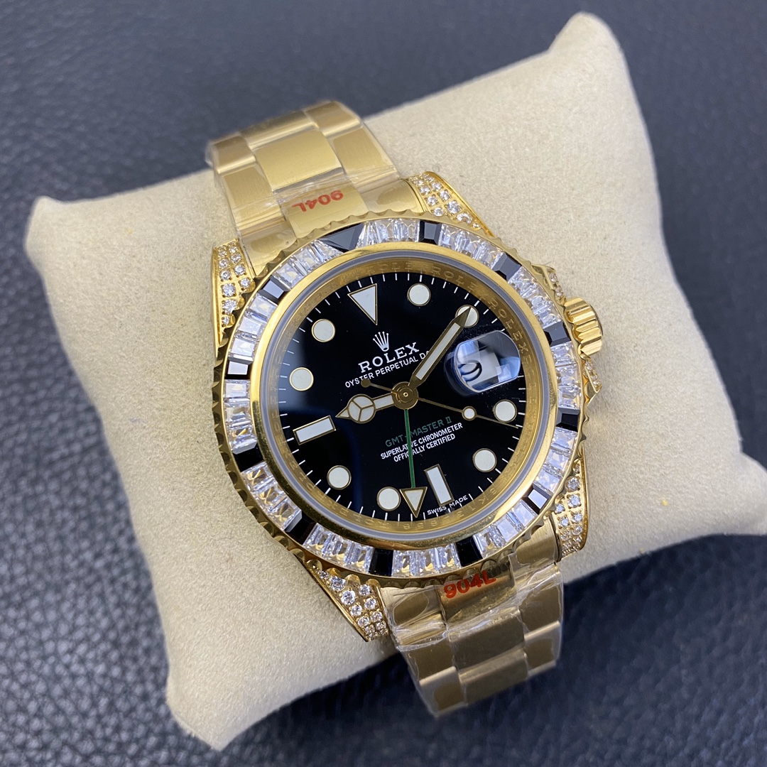 The Rolex GMT-Master series watch is highly acclaimed for its multi-functionality and time zone display feature. With a size of 40mm x 13mm, it showcases a classic and moderate men’s watch size, while the 2836 automatic mechanical movement ensures accurate time display. The superluminous function guarantees clear time reading in any lighting conditions. With a water resistance of over 100 meters, this watch is suitable for deeper underwater activities. The scratch-resistant blue sapphire crystal glass protects the dial and provides a clear view. The folding clasp and Oyster-style three-piece link bracelet offer a comfortable wearing experience and a classic look. This Rolex GMT-Master series watch is an ideal choice for men who pursue multi-functionality and high performance, showcasing the brand’s excellent craftsmanship and exquisite technology.