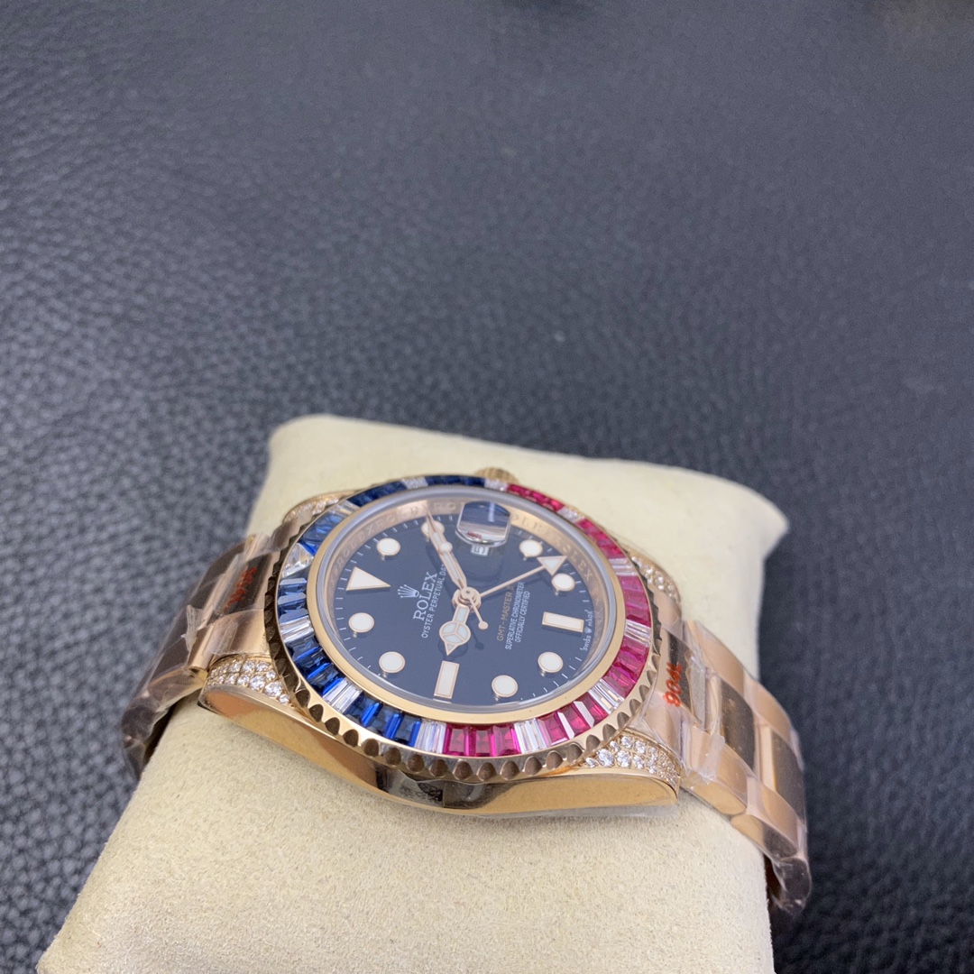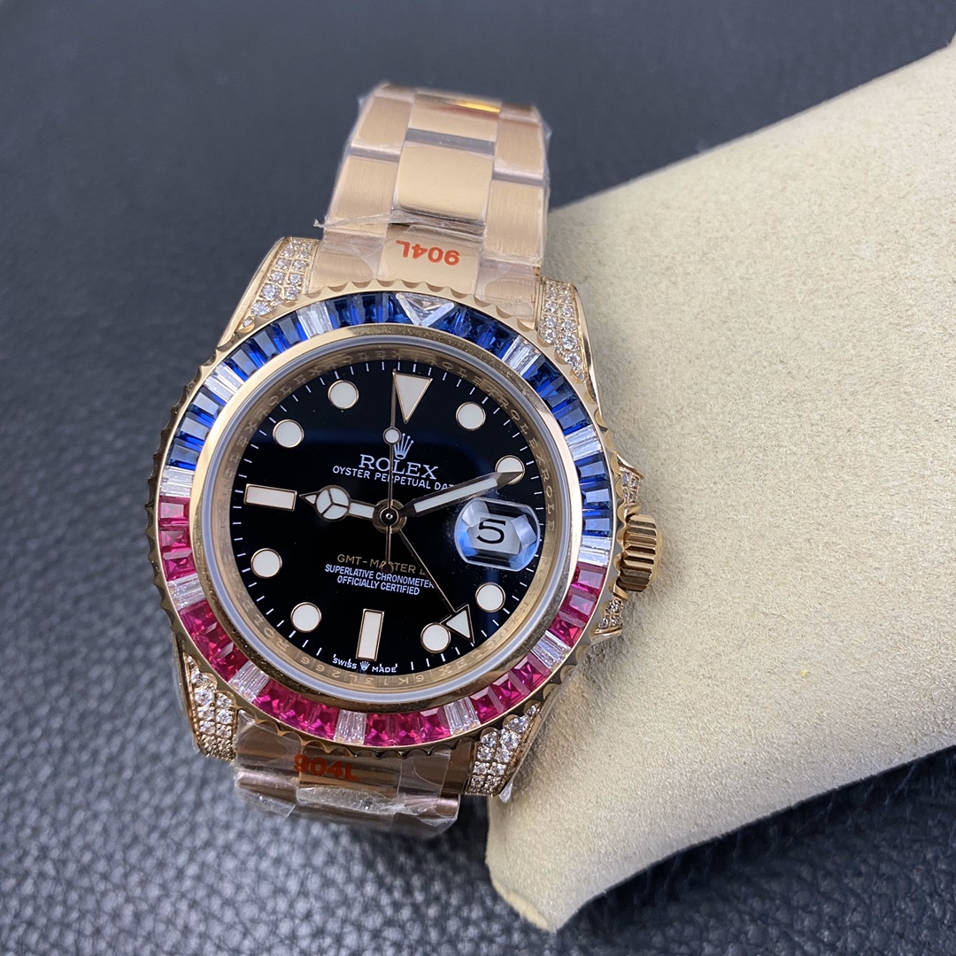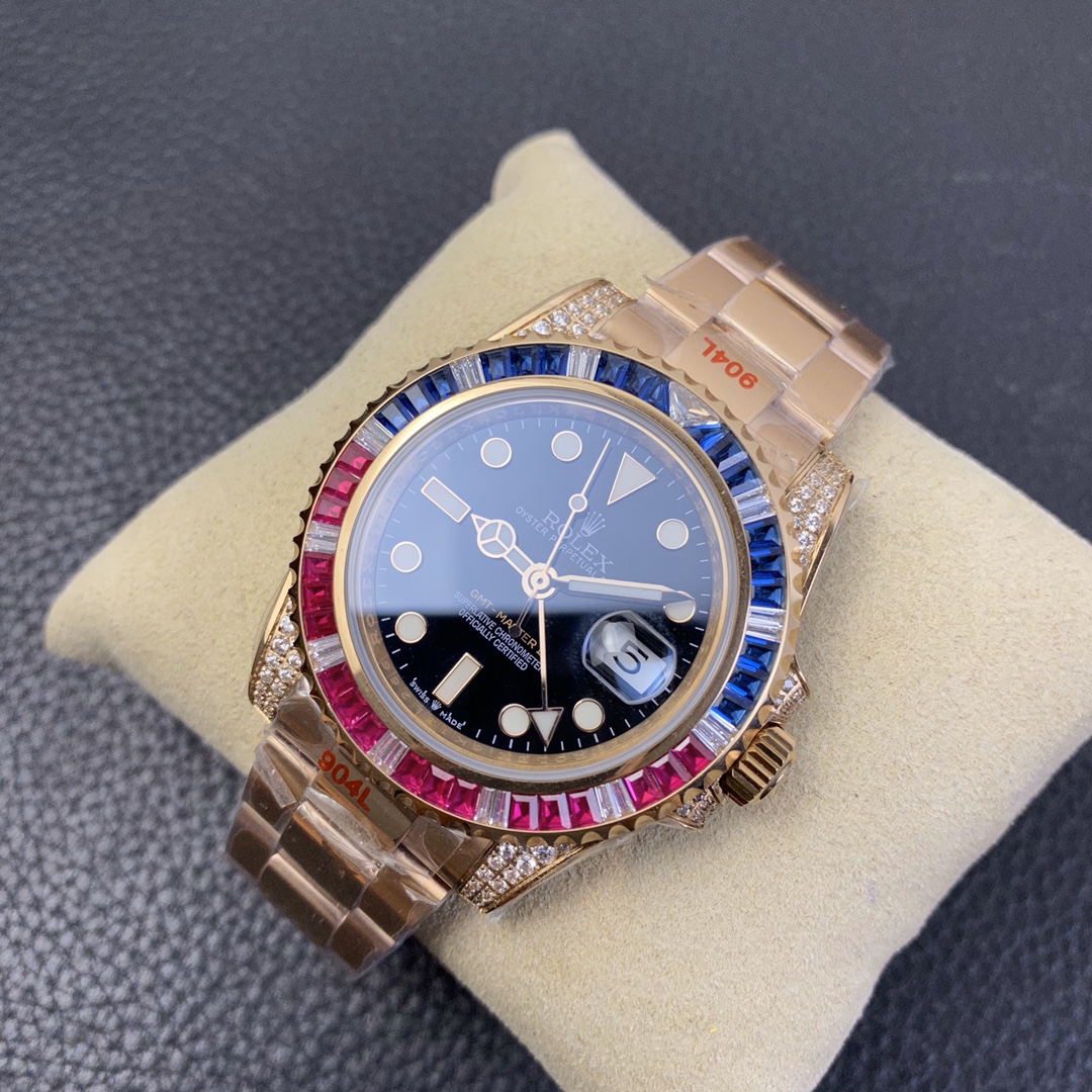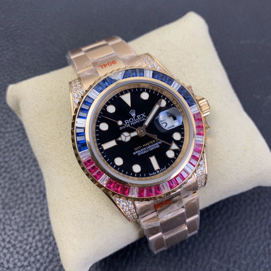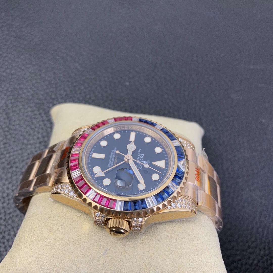 The Rolex GMT-Master series watch is highly acclaimed for its multi-functionality and time zone display feature. With a size of 40mm x 13mm, it showcases a classic and moderate men’s watch size, while the 2836 automatic mechanical movement ensures accurate time display. The superluminous function guarantees clear time reading in any lighting conditions. With a water resistance of over 100 meters, this watch is suitable for deeper underwater activities. The scratch-resistant blue sapphire crystal glass protects the dial and provides a clear view. The folding clasp and Oyster-style three-piece link bracelet offer a comfortable wearing experience and a classic look. This Rolex GMT-Master series watch is an ideal choice for men who pursue multi-functionality and high performance, showcasing the brand’s excellent craftsmanship and exquisite technology.