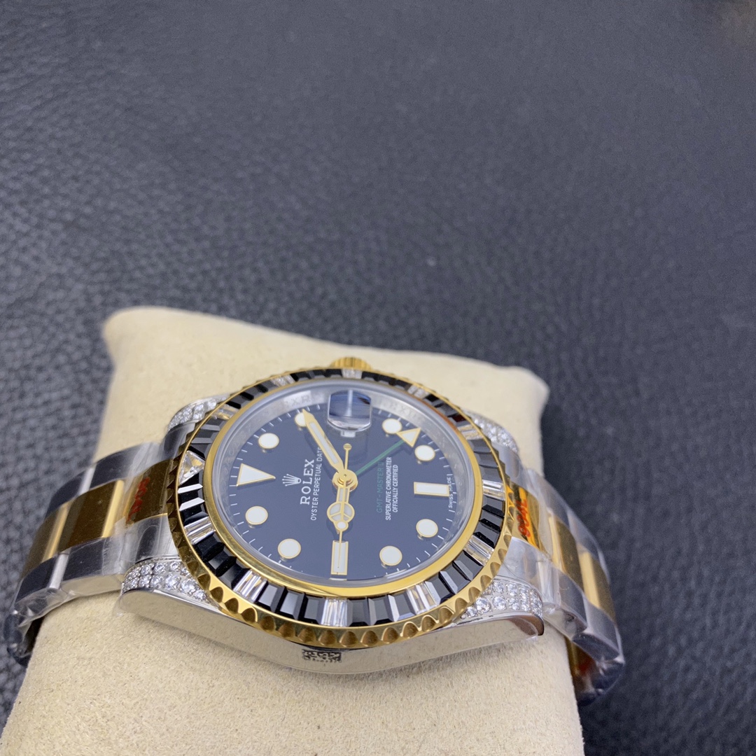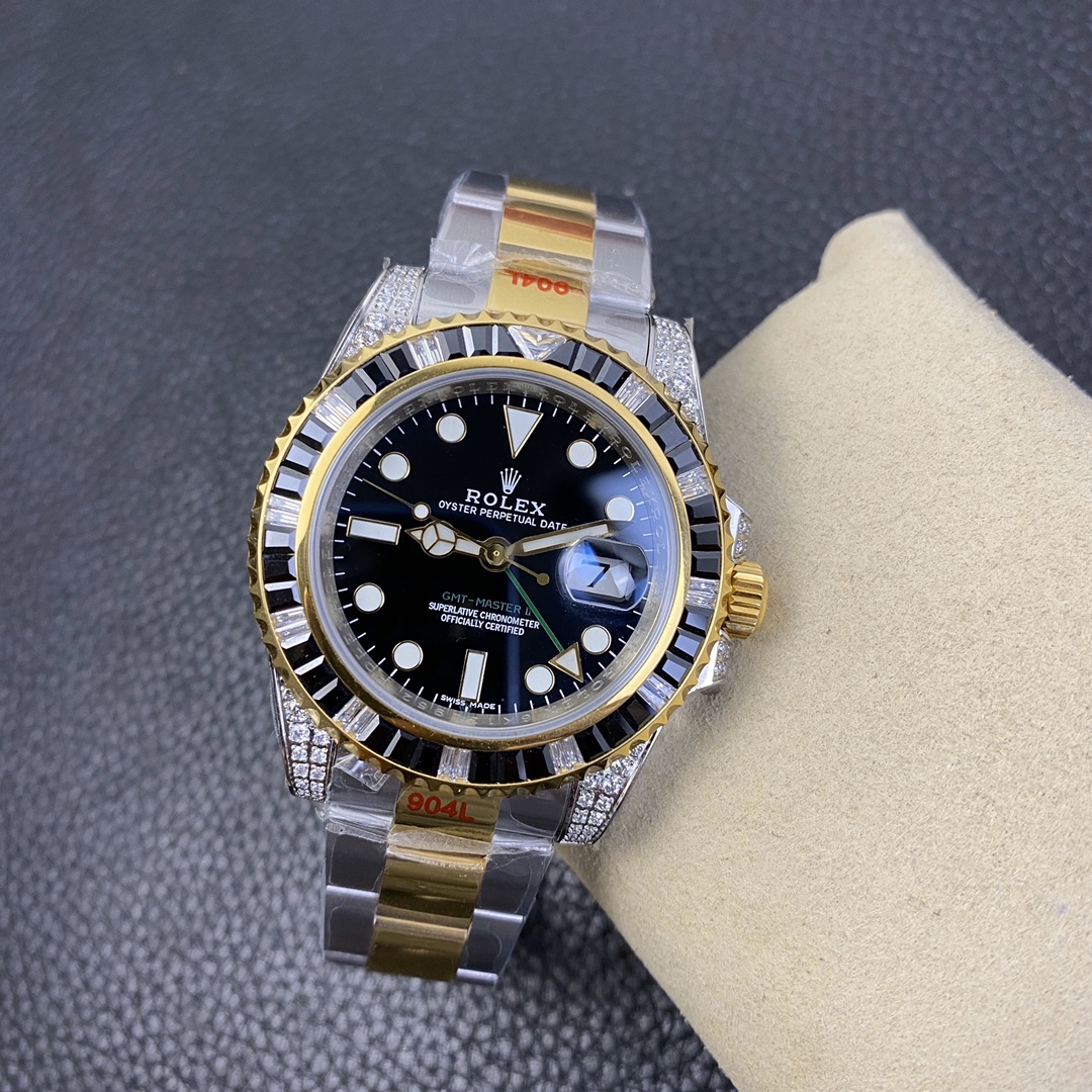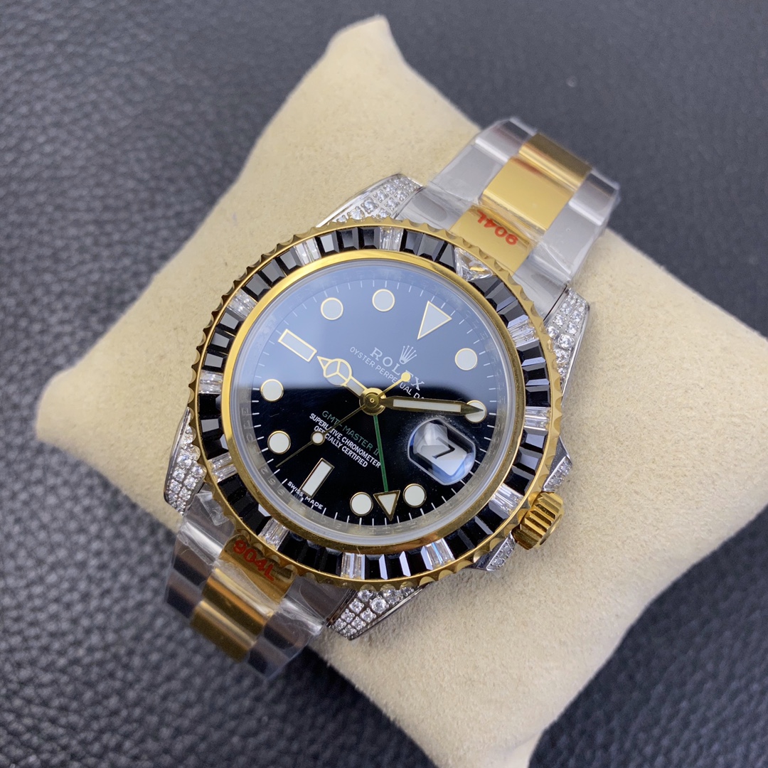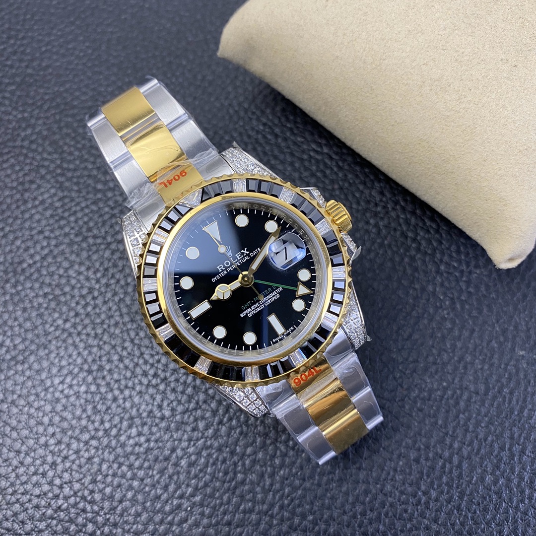 The Rolex GMT-Master series watch is highly acclaimed for its multi-functionality and time zone display feature. With a size of 40mm x 13mm, it showcases a classic and moderate men’s watch size, while the 2836 automatic mechanical movement ensures accurate time display. The superluminous function guarantees clear time reading in any lighting conditions. With a water resistance of over 100 meters, this watch is suitable for deeper underwater activities. The scratch-resistant blue sapphire crystal glass protects the dial and provides a clear view. The folding clasp and Oyster-style three-piece link bracelet offer a comfortable wearing experience and a classic look. This Rolex GMT-Master series watch is an ideal choice for men who pursue multi-functionality and high performance, showcasing the brand’s excellent craftsmanship and exquisite technology.
