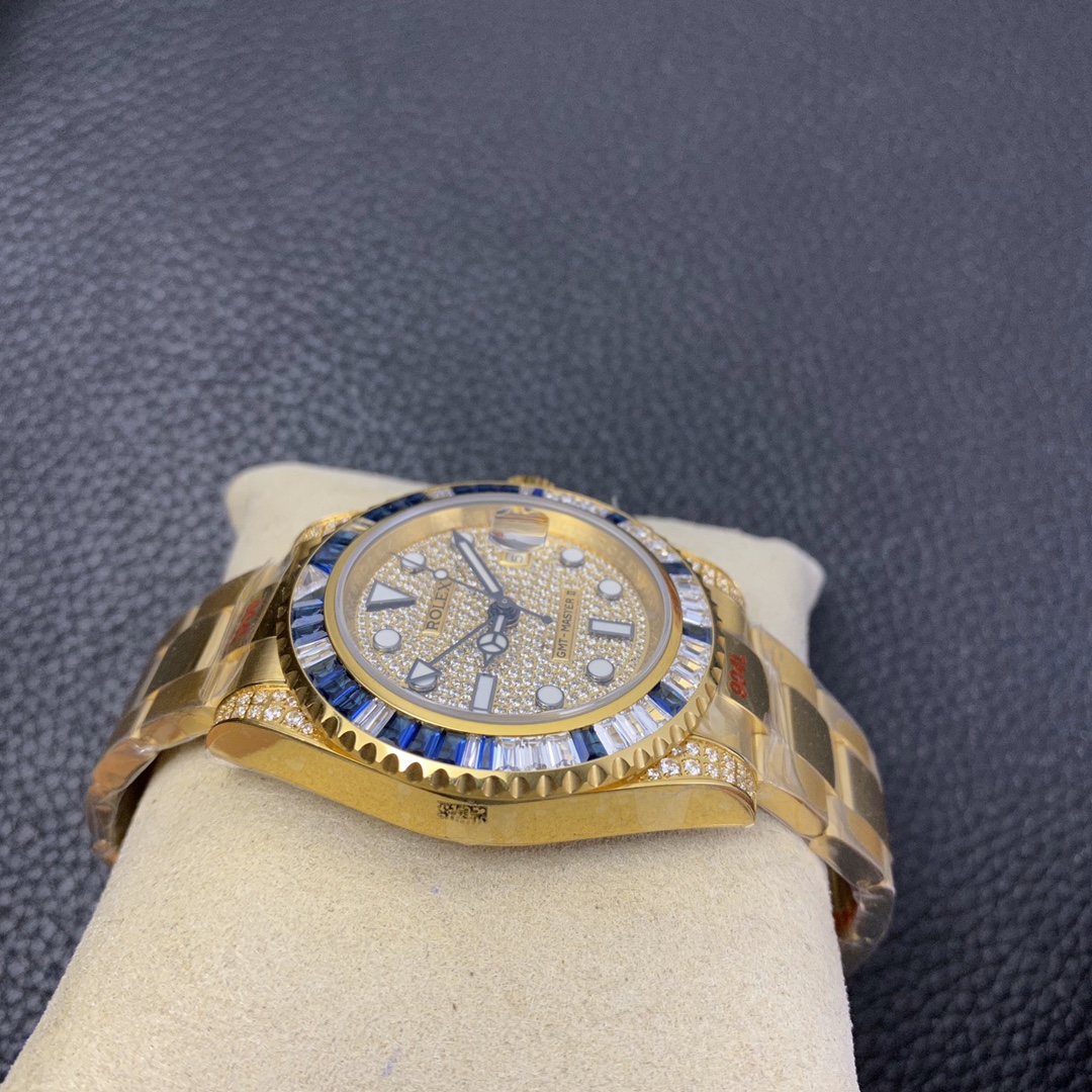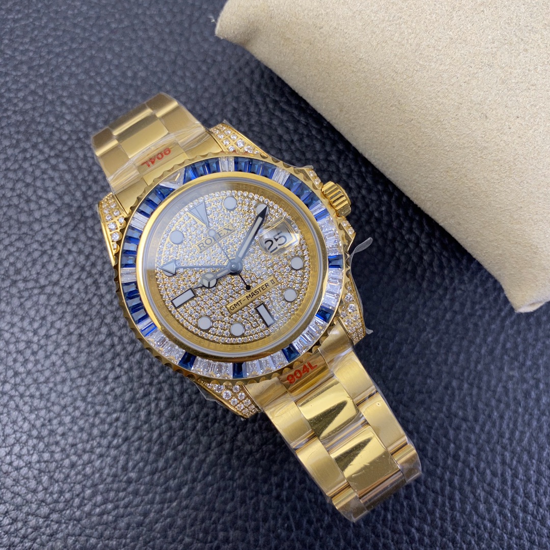 The Rolex GMT-Master series watch is highly acclaimed for its multi-functionality and time zone display feature. With a size of 40mm x 13mm, it showcases a classic and moderate men’s watch size, while the 2836 automatic mechanical movement ensures accurate time display. The superluminous function guarantees clear time reading in any lighting conditions. With a water resistance of over 100 meters, this watch is suitable for deeper underwater activities. The scratch-resistant blue sapphire crystal glass protects the dial and provides a clear view. The folding clasp and Oyster-style three-piece link bracelet offer a comfortable wearing experience and a classic look. This Rolex GMT-Master series watch is an ideal choice for men who pursue multi-functionality and high performance, showcasing the brand’s excellent craftsmanship and exquisite technology.