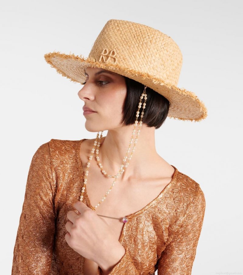 Ruslan BaginskiyLeather-trimmed straw sun hat