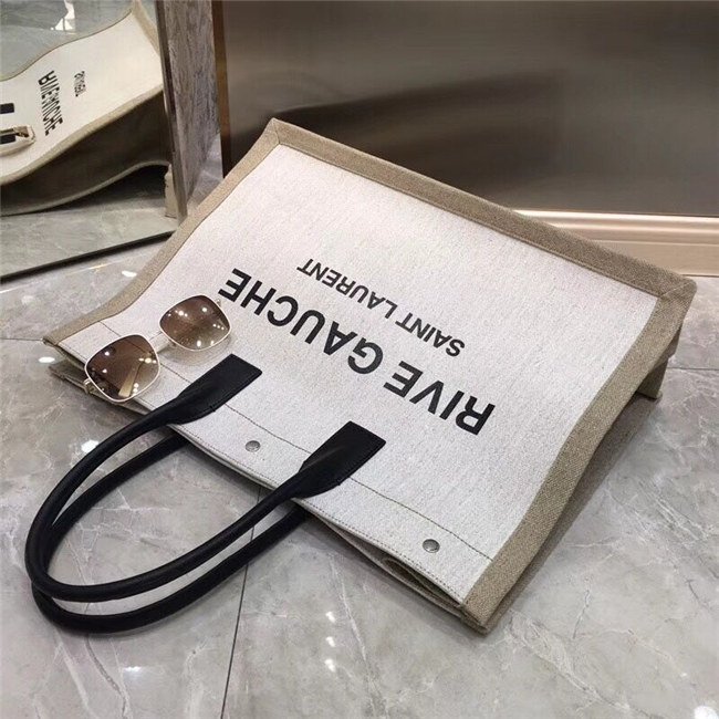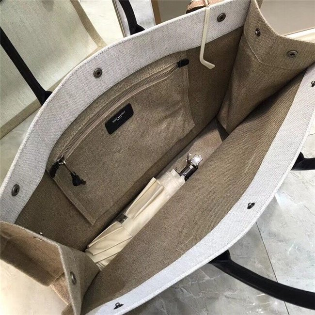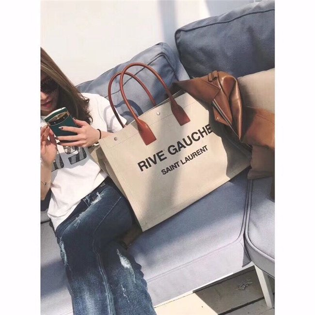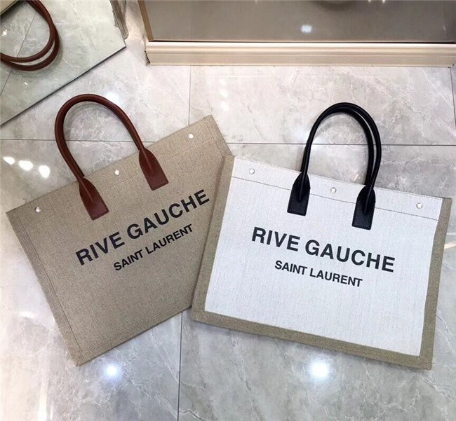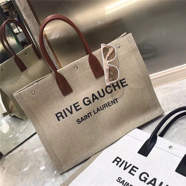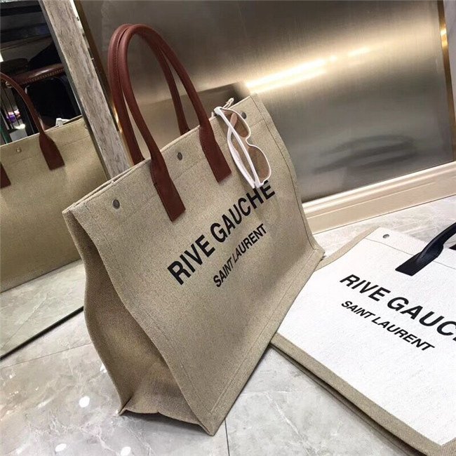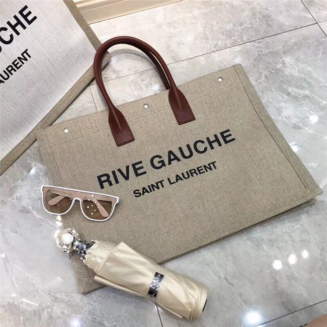 Rive Gauche Tote Bag In Beige Linen And Cogeac Leather