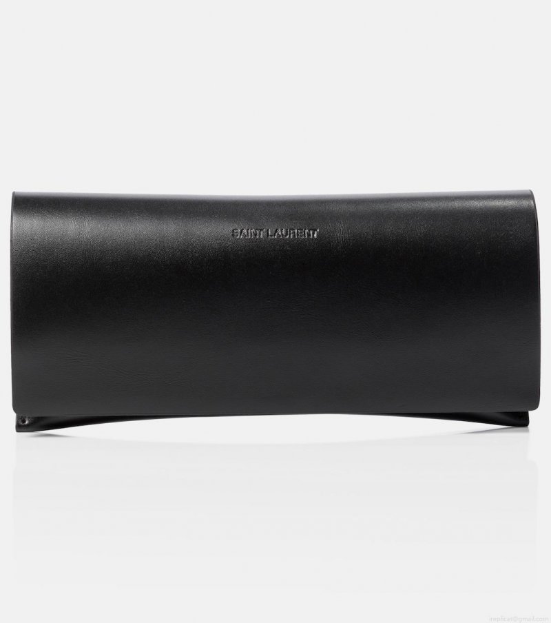 Saint Laurent's SL 570 sunglasses have square cat-eye frames. They're made from glossy black acetate and trimmed with a gold-tone metal bar.