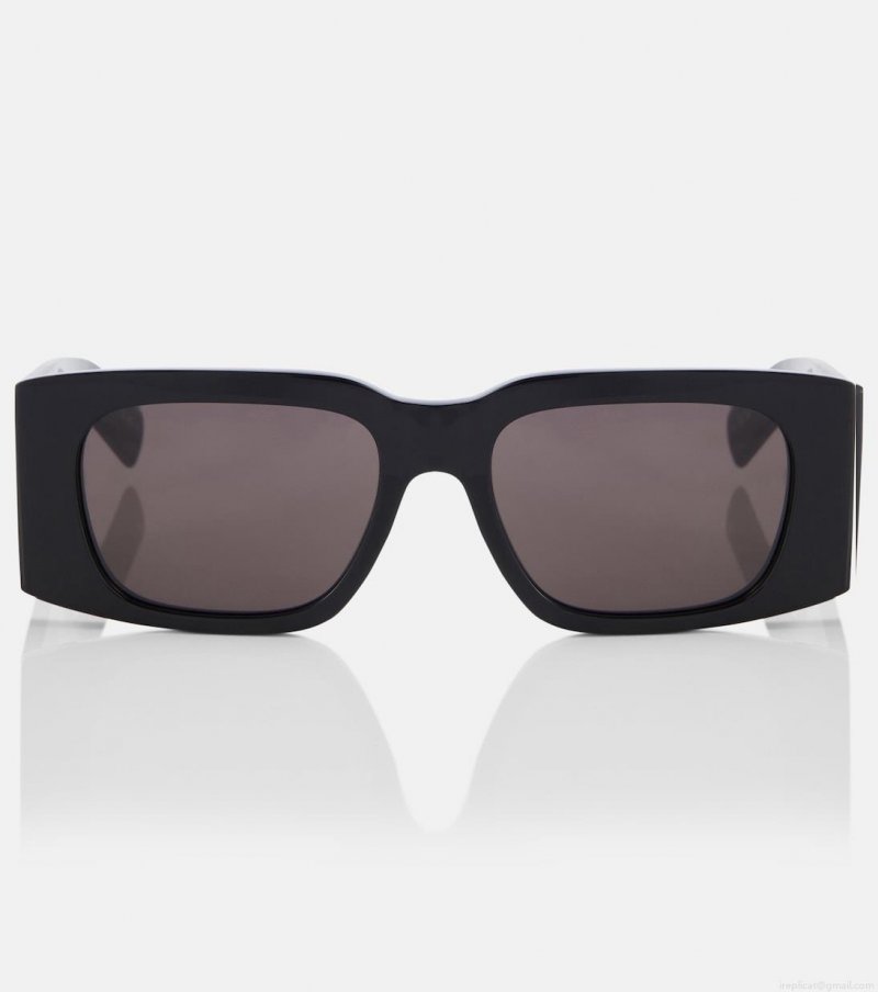 Envisioned with Saint Laurent's refined modernity, the SL 654 sunglasses have angular rectangular acetate frames in black. This style has exaggerated panel arms with logo detailing and tinted UV-protective lenses.