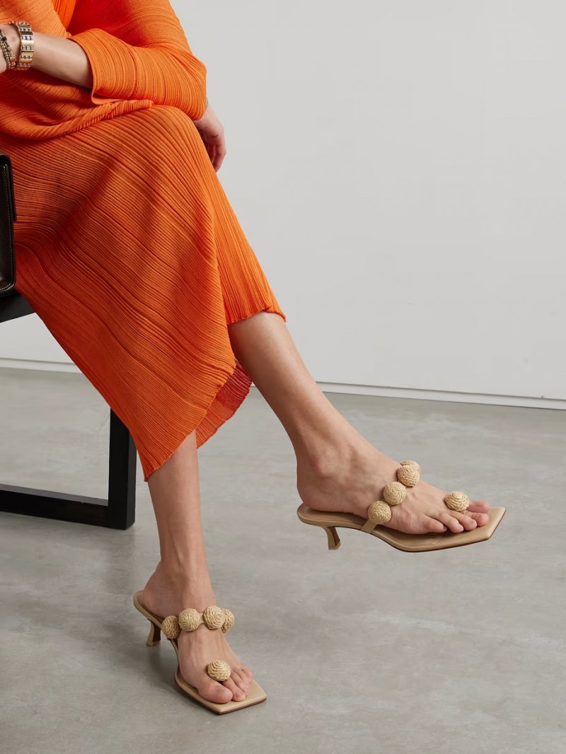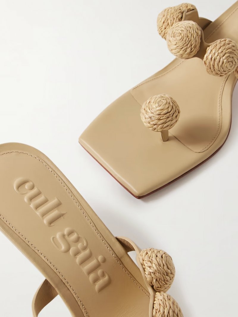 - Beige raffia and leather