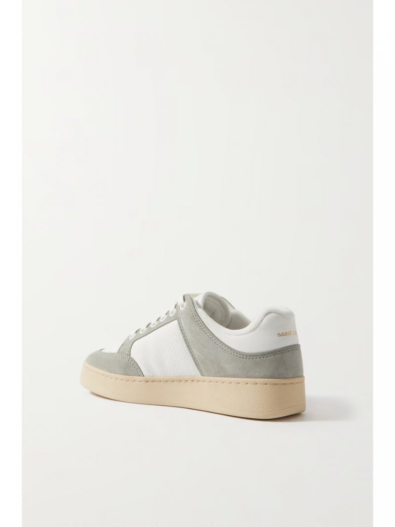 - White leather, gray suede