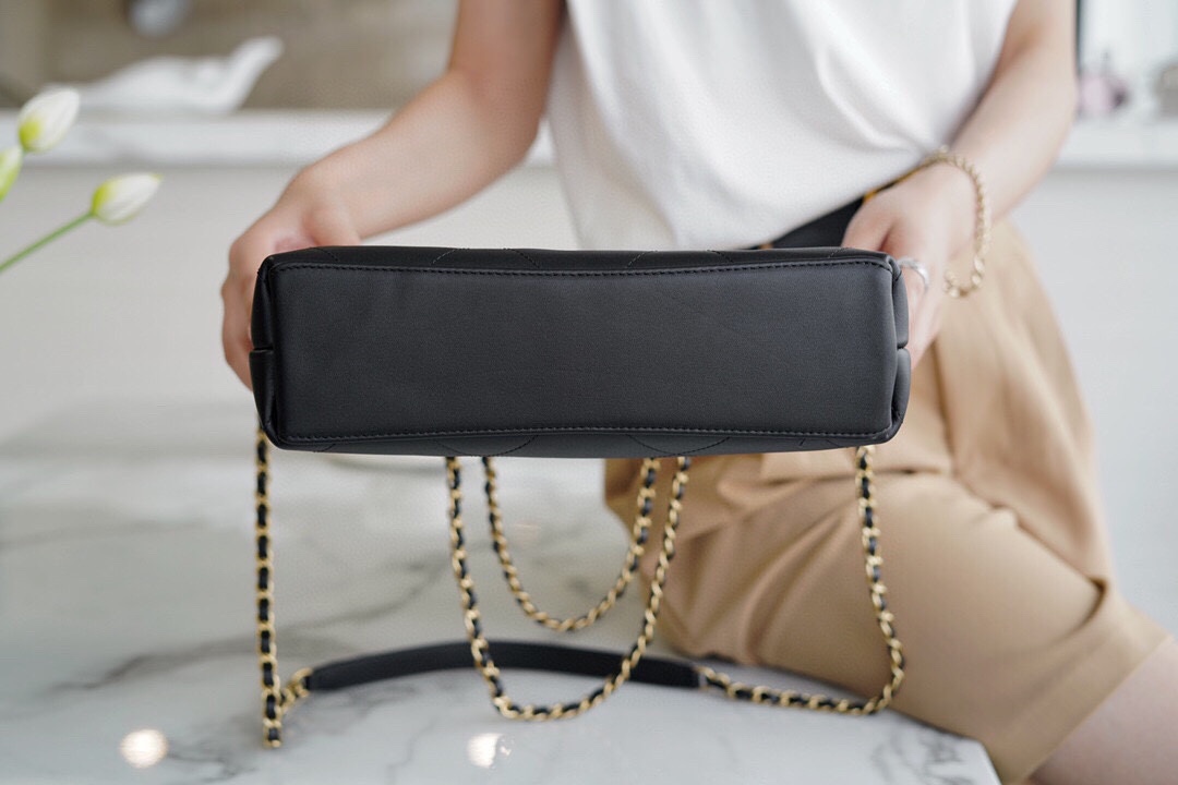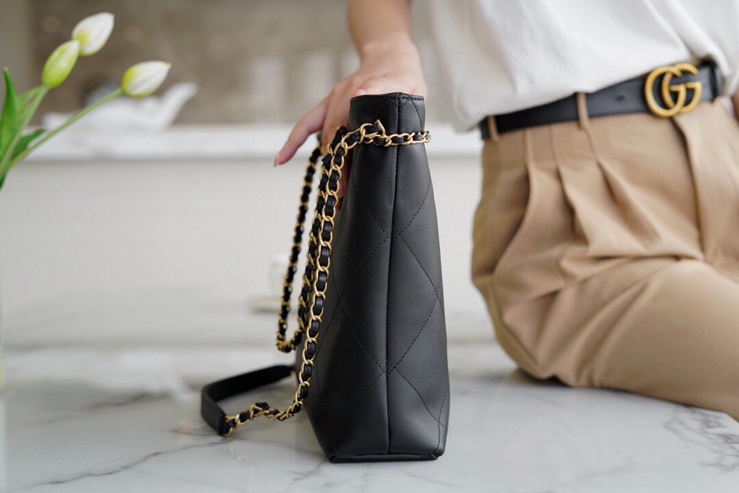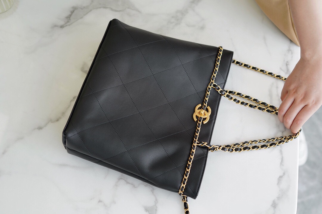Black Quilted Calfskin,Gold Hardware