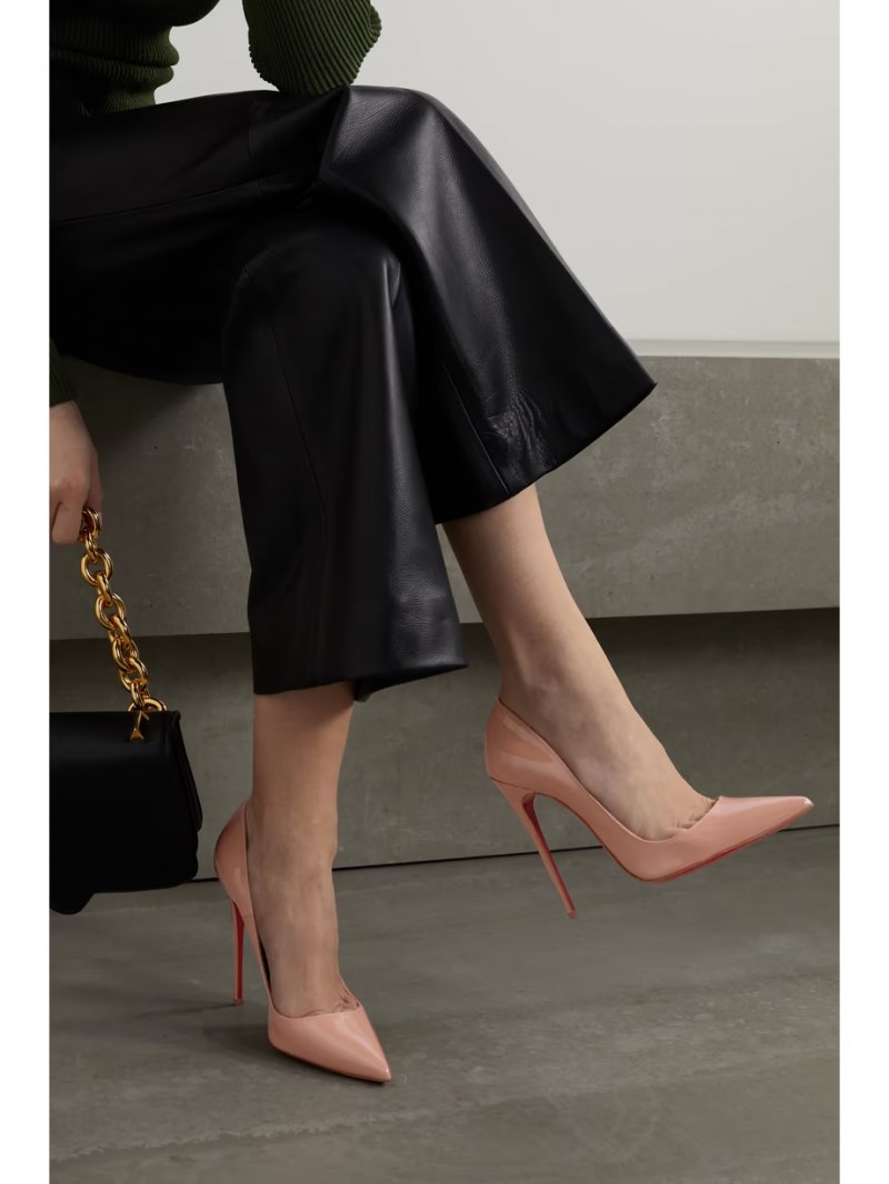 - Beige patent-leather