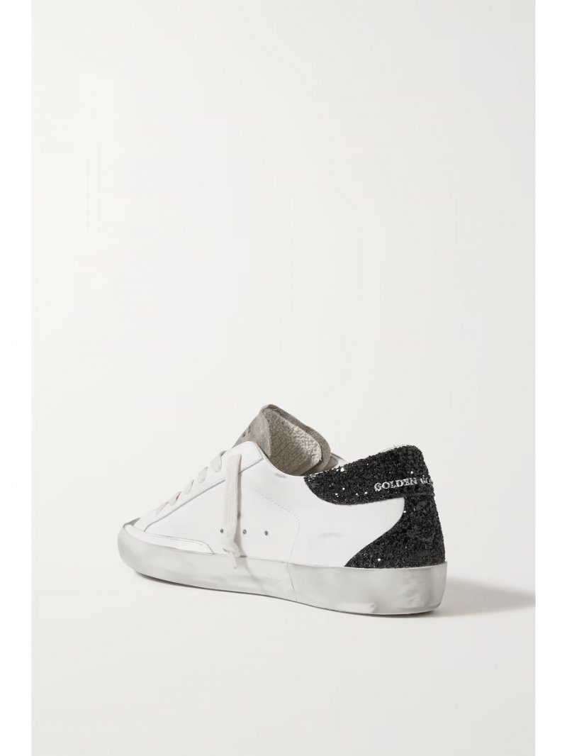 - White and black leather, silver glittered leather (Calf)