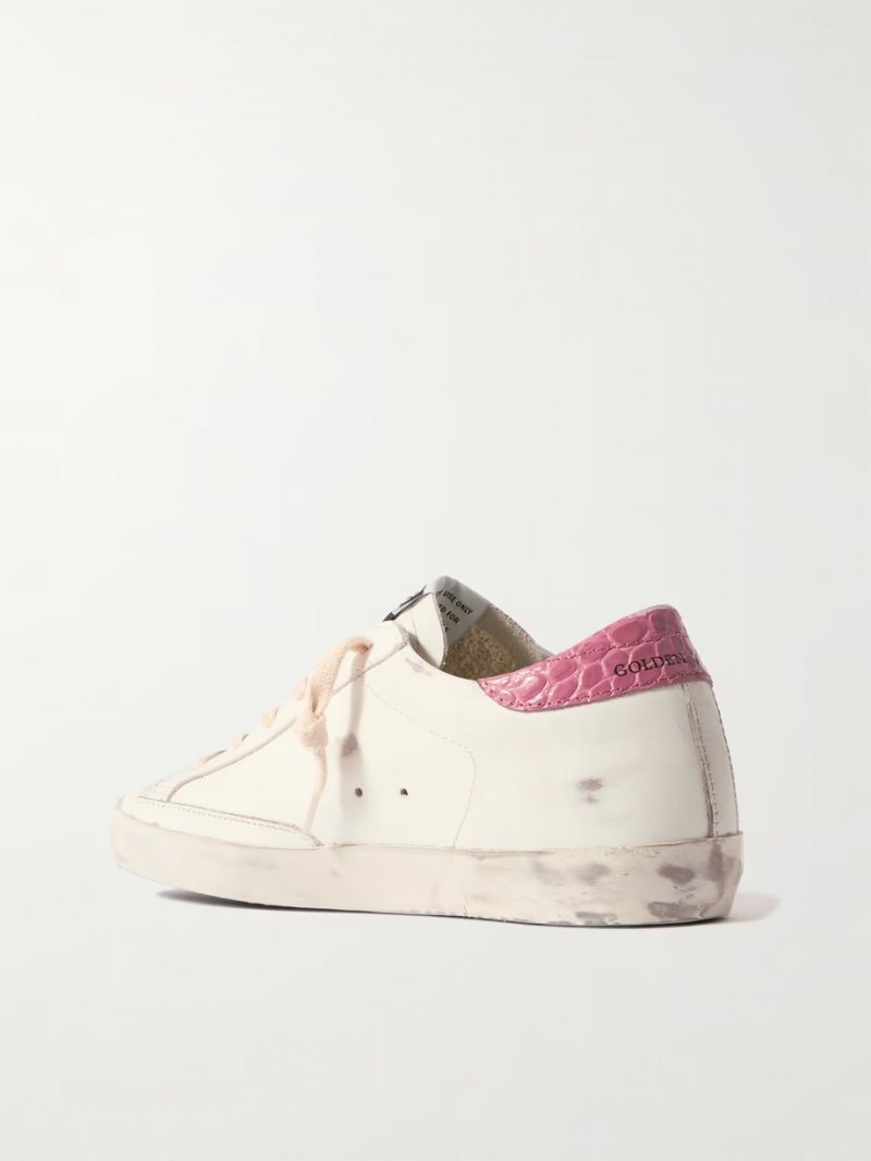 - White leather, pink croc-effect leather, silver glittered leather (Cow)