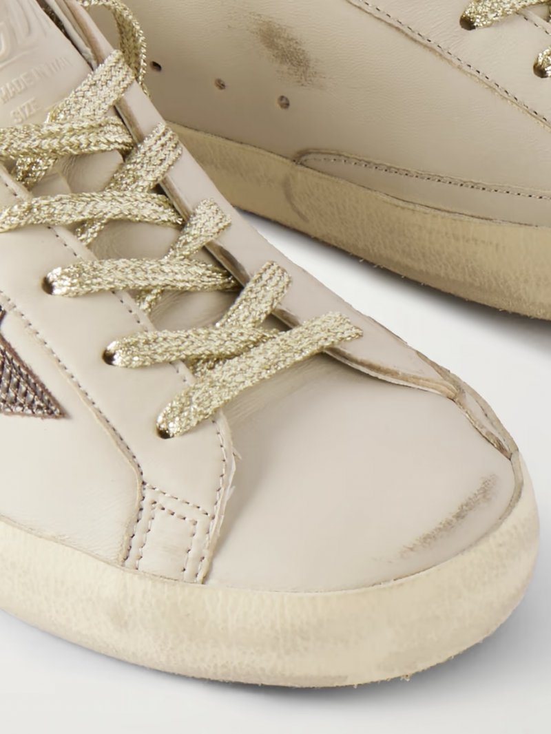 - Off-white leather, brown croc-effect leather