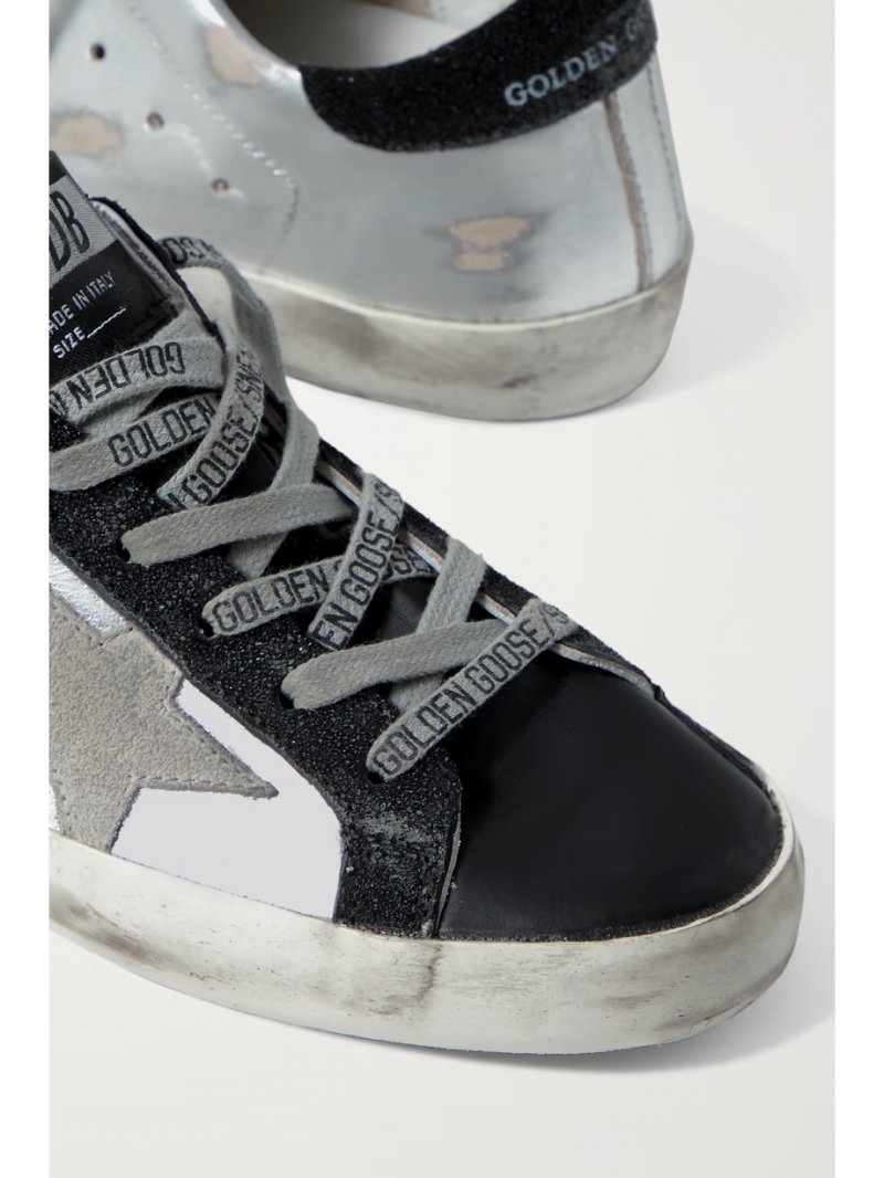 - Black leather and suede, silver leather (Cow)