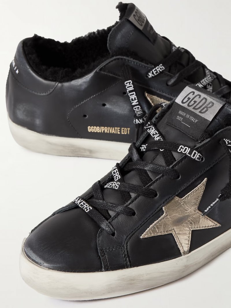 - Black and gold leather (Cow), black shearling