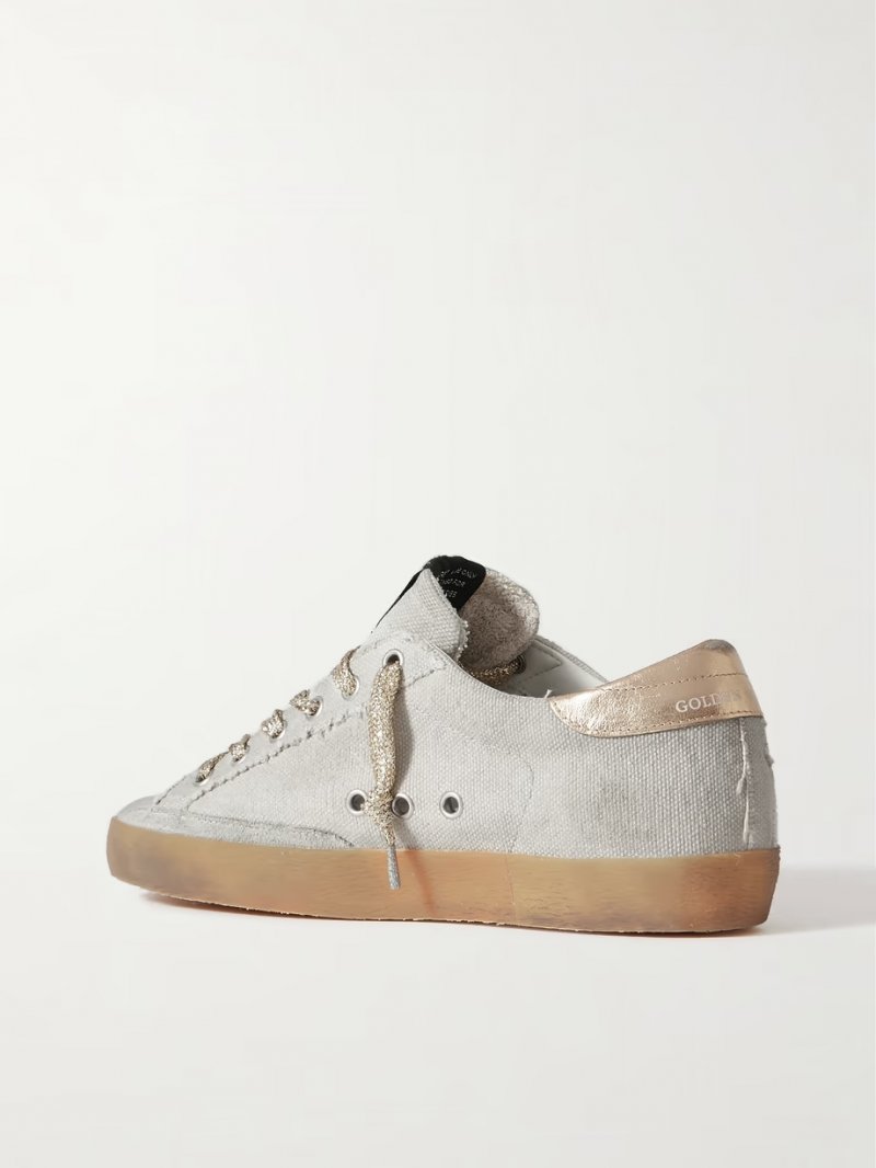 - Off-white canvas and suede, gold leather