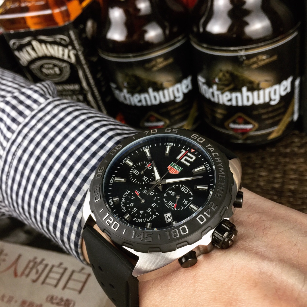 Equipped with a Japanese multifunctional quartz chronograph movement, sandblasted stainless steel case, engraved decorative pattern, screw-in crown, unidirectional rotating bezel, black PVD stainless steel folding clasp, 41mm dial diameter. Embrace the speed and passion on your wrist, fulfilling your unrealized racing dreams.