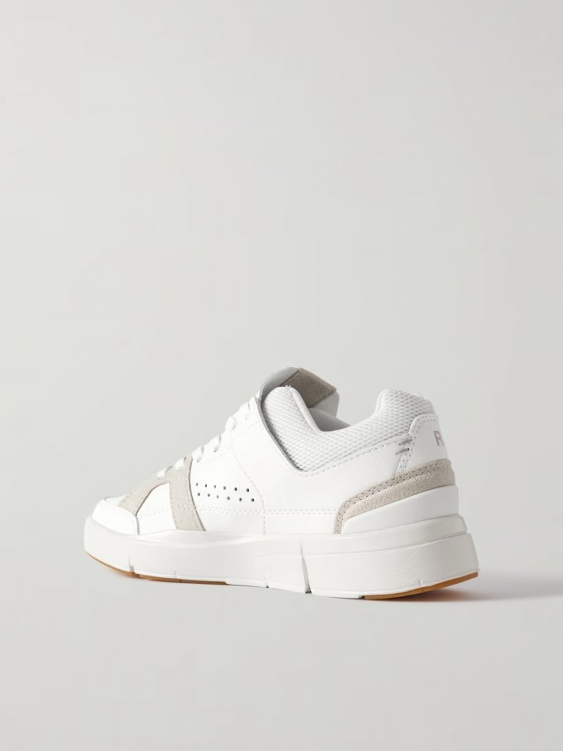 - White faux leather, gray faux suede