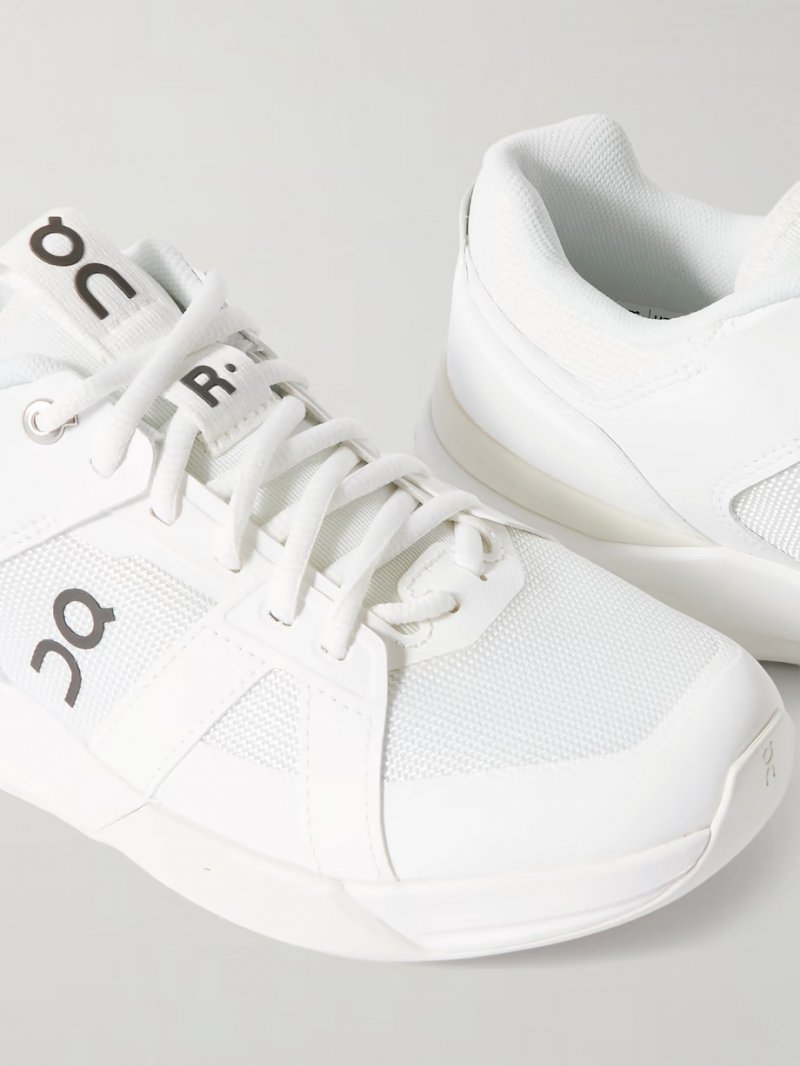- White faux leather and mesh