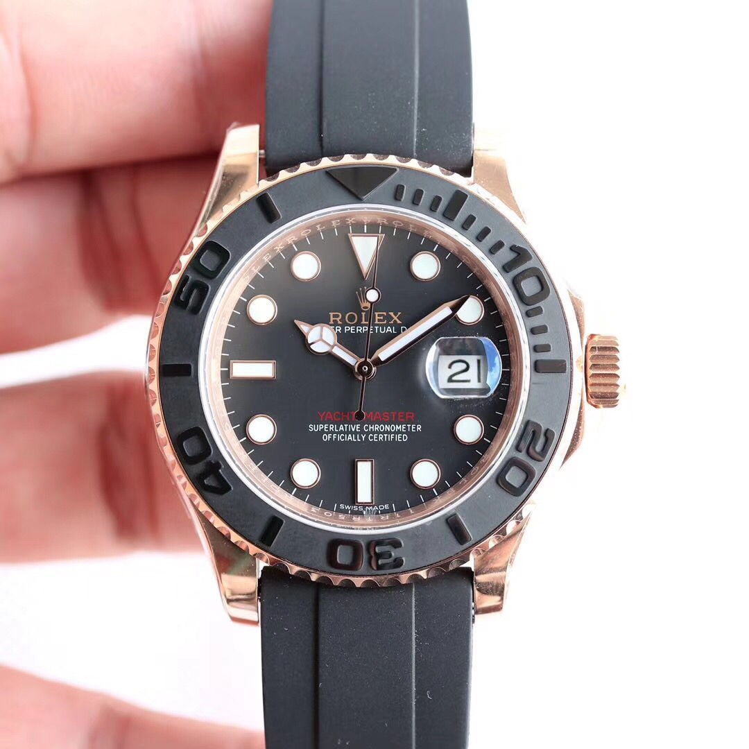 The Rolex Yacht-Master Gold Collection watch is an ideal choice for successful individuals and watch enthusiasts due to its luxurious feel, precise movement, and waterproof performance. With a diameter of 40mm, it fits most people comfortably, while its 100-meter water resistance makes it suitable for various daily activities and shallow-water diving. The watch features the 3135 caliber movement, ensuring accurate timekeeping and reliable performance. The gold bezel, black ceramic dial, and gold hands and hour markers add a touch of luxury and visual impact. Whether in business or leisure settings, the Rolex Yacht-Master Gold Collection watch showcases your taste and success.