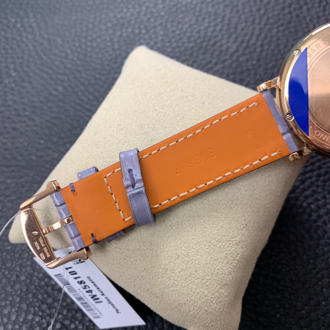 The IWC Portofino series watch is famous for its classic and elegant design style.The 37-mm diameter shows a medium-sized appearance, suitable for most wrist sizes.Equipped with an automatic movement, it ensures accurate and reliable time display.The watch has the functions of hours, minutes, and seconds, meeting the basic needs of daily use.The water resistance of 30 meters makes the watch suitable for water passion in daily life.The sapphire crystal glass lens has excellent transparency and scratch resistance, protecting the clarity of the dial.Equipped with a pin buckle design, it is simple and elegant.The stainless steel case exhibits a sturdy and classic appearance.Paired with a leather strap, it is both elegant and comfortable.The IWC Portofino series watch, with its exquisite craftsmanship and classic design, brings endless charm to those who love elegant style.
