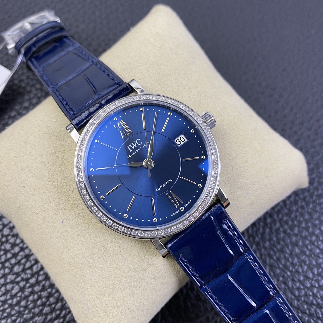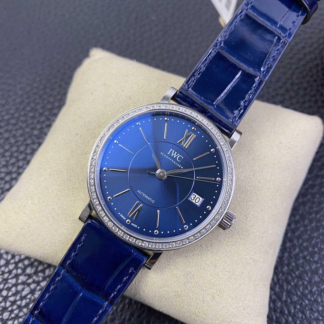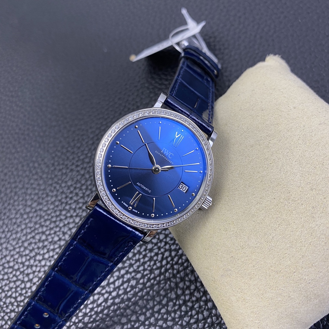 The IWC Portofino series watch is famous for its classic and elegant design style.The 37-mm diameter shows a medium-sized appearance, suitable for most wrist sizes.Equipped with an automatic movement, it ensures accurate and reliable time display.The watch has the functions of hours, minutes, and seconds, meeting the basic needs of daily use.The water resistance of 30 meters makes the watch suitable for water passion in daily life.The sapphire crystal glass lens has excellent transparency and scratch resistance, protecting the clarity of the dial.Equipped with a pin buckle design, it is simple and elegant.The stainless steel case exhibits a sturdy and classic appearance.Paired with a leather strap, it is both elegant and comfortable.The IWC Portofino series watch, with its exquisite craftsmanship and classic design, brings endless charm to those who love elegant style.
