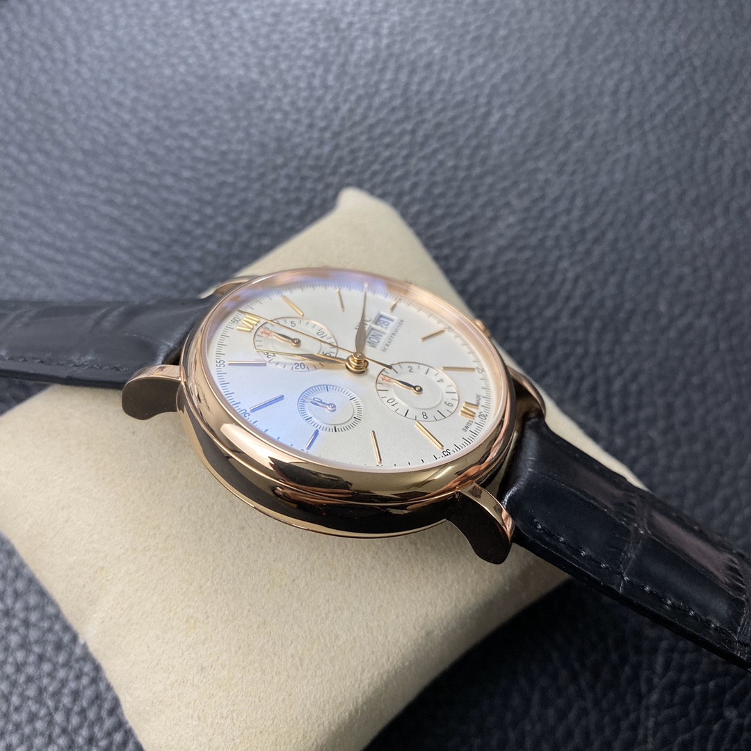 The IWC Portofino series watch is famous for its classic and elegant design style.The 42-mm diameter shows a medium-sized appearance, suitable for most wrist sizes.Equipped with an automatic movement, it ensures accurate and reliable time display.The watch has the functions of hours, minutes, and seconds, meeting the basic needs of daily use.The water resistance of 30 meters makes the watch suitable for water passion in daily life.The sapphire crystal glass lens has excellent transparency and scratch resistance, protecting the clarity of the dial.Equipped with a pin buckle design, it is simple and elegant.The stainless steel case exhibits a sturdy and classic appearance.Paired with a leather strap, it is both elegant and comfortable.The IWC Portofino series watch, with its exquisite craftsmanship and classic design, brings endless charm to those who love elegant style.