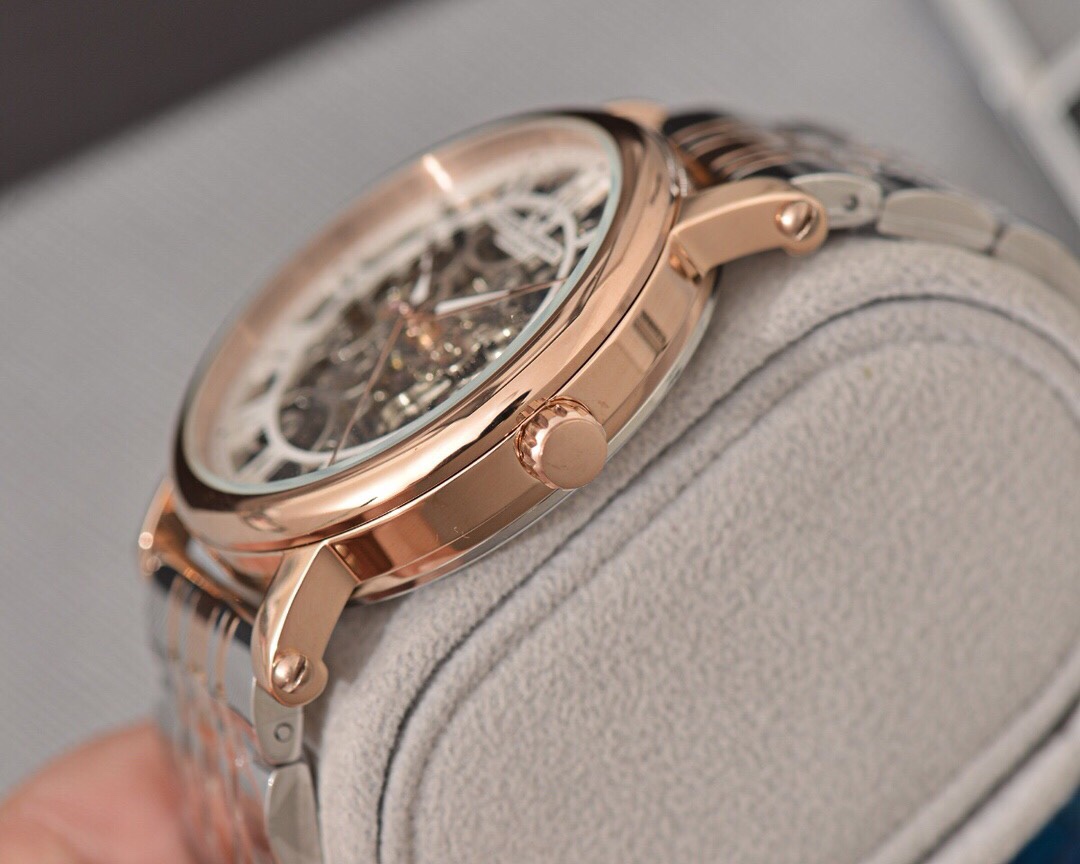 Vacheron Constantin is renowned for its exquisite design and exceptional watchmaking craftsmanship. With a diameter of 42mm and a thickness of 12mm, the watch showcases a medium-sized appearance that suits most men’s wrist sizes. It is equipped with an automatic movement, ensuring accurate and reliable timekeeping. The watch features hour, minute, and second functions, meeting the basic daily needs. The mineral crystal glass provides excellent transparency and scratch resistance, preserving the clarity of the dial. The watch is adorned with a fine buckle design, showcasing delicacy and a sense of luxury. The stainless steel case exhibits durability, a timeless aesthetic, and highlights the brand’s craftsmanship. Paired with a leather strap, it offers both comfort and style. Vacheron Constantin’s fine men’s watch captivates gentlemen with its elegant appearance and superb quality, bringing endless charm to those who appreciate refinement and taste.