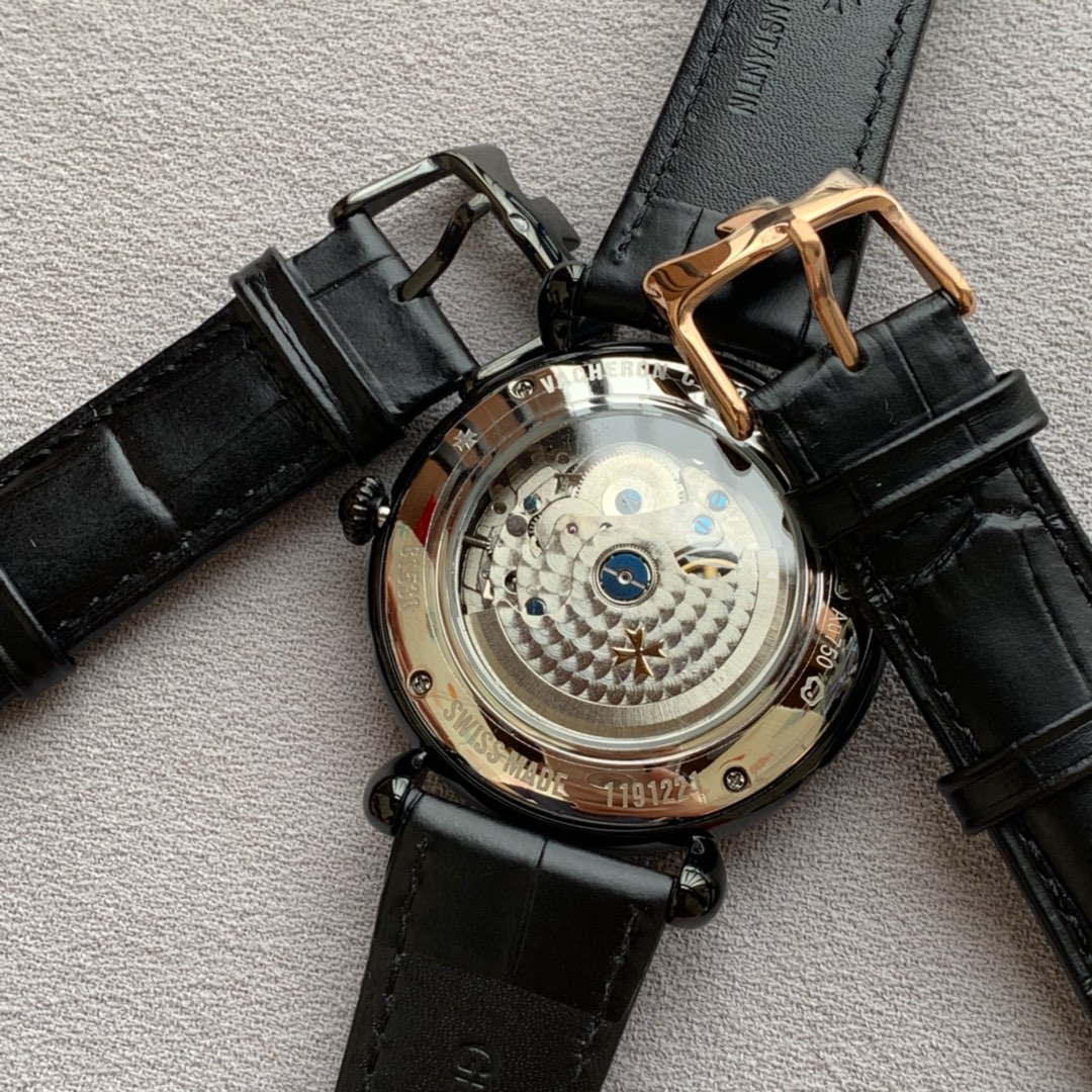 Vacheron Constantin is renowned for its exquisite design and exceptional watchmaking craftsmanship. With a diameter of 43mm and a thickness of 12mm, the watch showcases a medium-sized appearance that suits most men’s wrist sizes. It is equipped with an automatic movement, ensuring accurate and reliable timekeeping. The watch features hour, minute, and second functions, meeting the basic daily needs. The mineral crystal glass provides excellent transparency and scratch resistance, preserving the clarity of the dial. The watch is adorned with a fine buckle design, showcasing delicacy and a sense of luxury. The stainless steel case exhibits durability, a timeless aesthetic, and highlights the brand’s craftsmanship. Paired with a leather strap, it offers both comfort and style. Vacheron Constantin’s fine men’s watch captivates gentlemen with its elegant appearance and superb quality, bringing endless charm to those who appreciate refinement and taste.