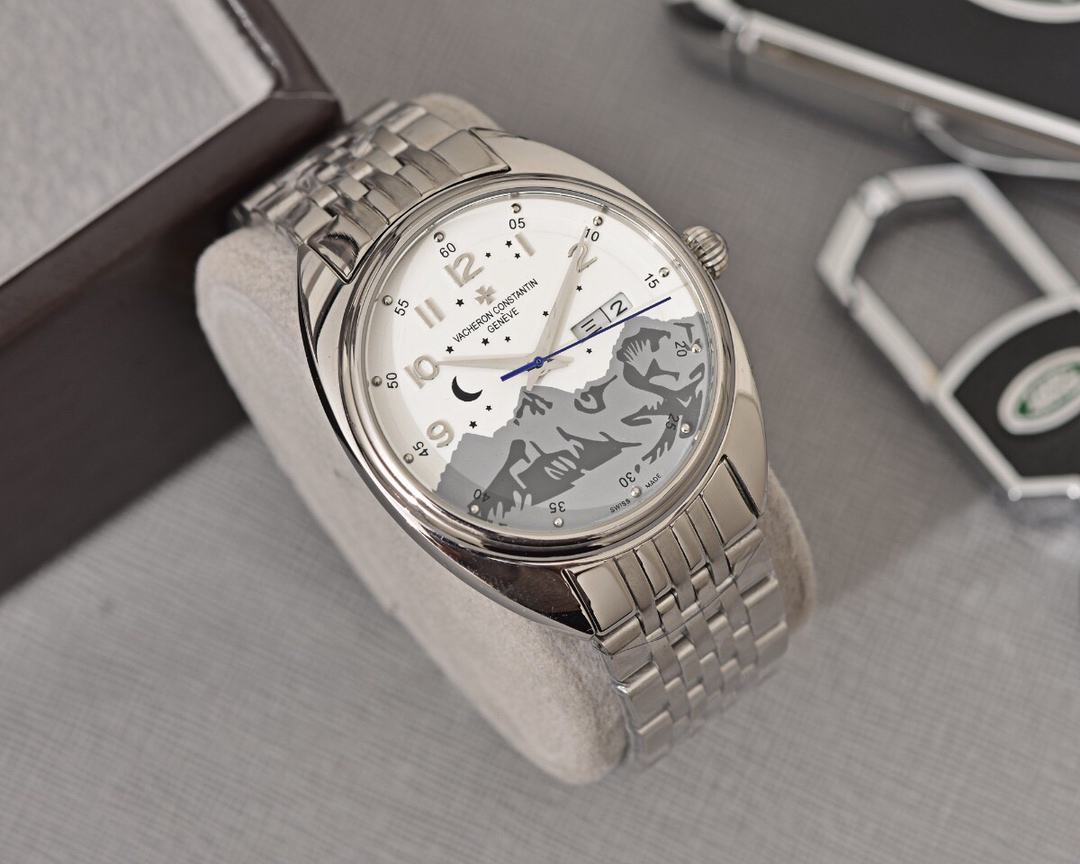 This Vacheron Constantin men’s luxury wristwatch is renowned for its unique design and exceptional watchmaking craftsmanship. With a diameter of 41mm and a thickness of 12mm, it showcases a classic and exquisite appearance. Equipped with an automatic movement, it ensures precise and reliable timekeeping. The watch features hour, minute, and second functions, meeting the basic needs for daily use. The mineral crystal glass with enhanced transparency and scratch resistance protects the clarity of the dial. It is designed with a folding clasp for convenient wearing and adjustment. The stainless steel case exhibits durability, a classic look, and showcases the brand’s craftsmanship level. Paired with a stainless steel bracelet, it offers both comfort and style. This Vacheron Constantin men’s luxury wristwatch will bring you endless charm and taste.