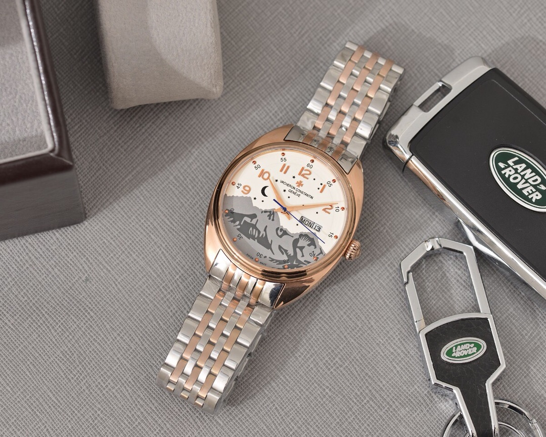 This Vacheron Constantin men’s luxury wristwatch is renowned for its unique design and exceptional watchmaking craftsmanship. With a diameter of 41mm and a thickness of 12mm, it showcases a classic and exquisite appearance. Equipped with an automatic movement, it ensures precise and reliable timekeeping. The watch features hour, minute, and second functions, meeting the basic needs for daily use. The mineral crystal glass with enhanced transparency and scratch resistance protects the clarity of the dial. It is designed with a folding clasp for convenient wearing and adjustment. The stainless steel case exhibits durability, a classic look, and showcases the brand’s craftsmanship level. Paired with a stainless steel bracelet, it offers both comfort and style. This Vacheron Constantin men’s luxury wristwatch will bring you endless charm and taste.