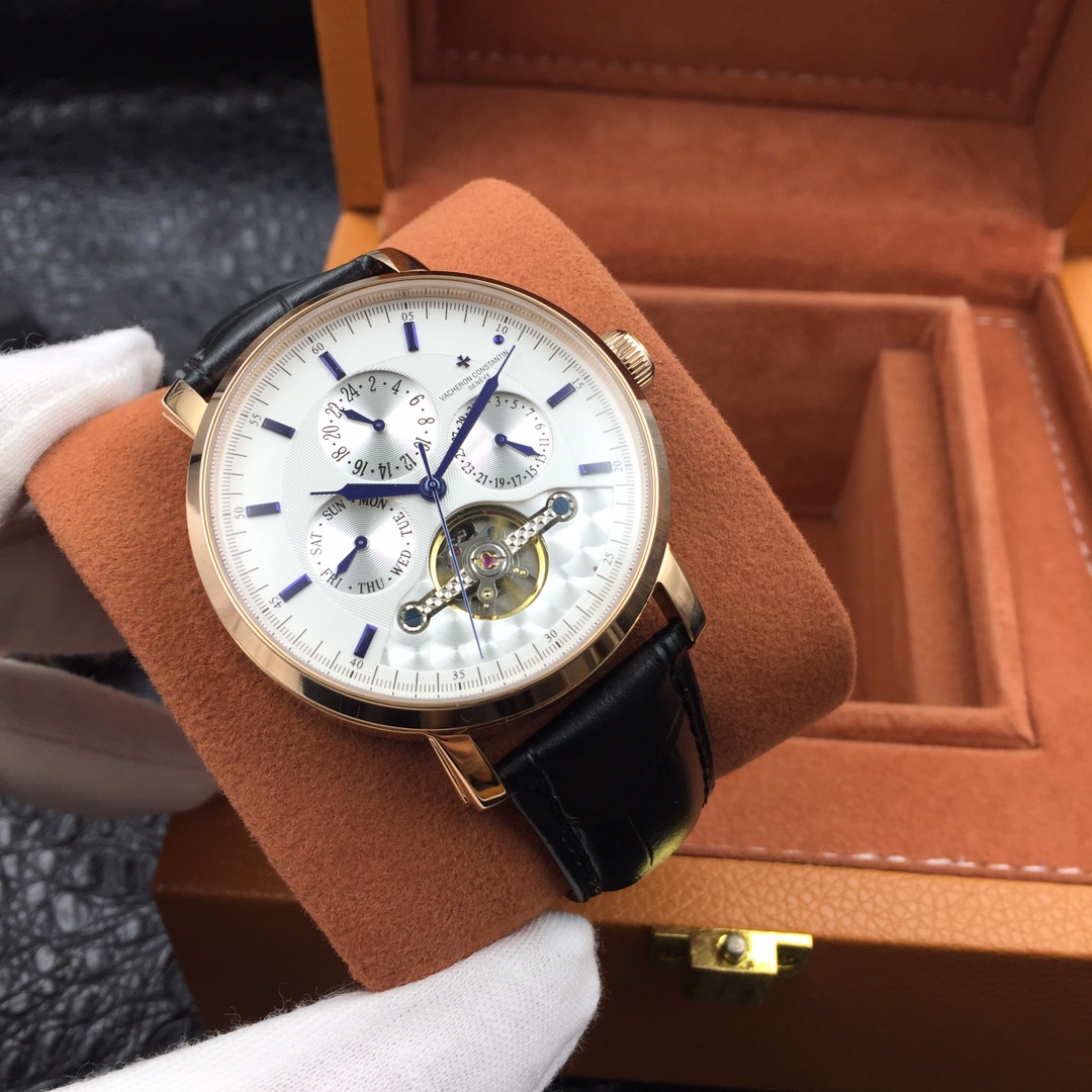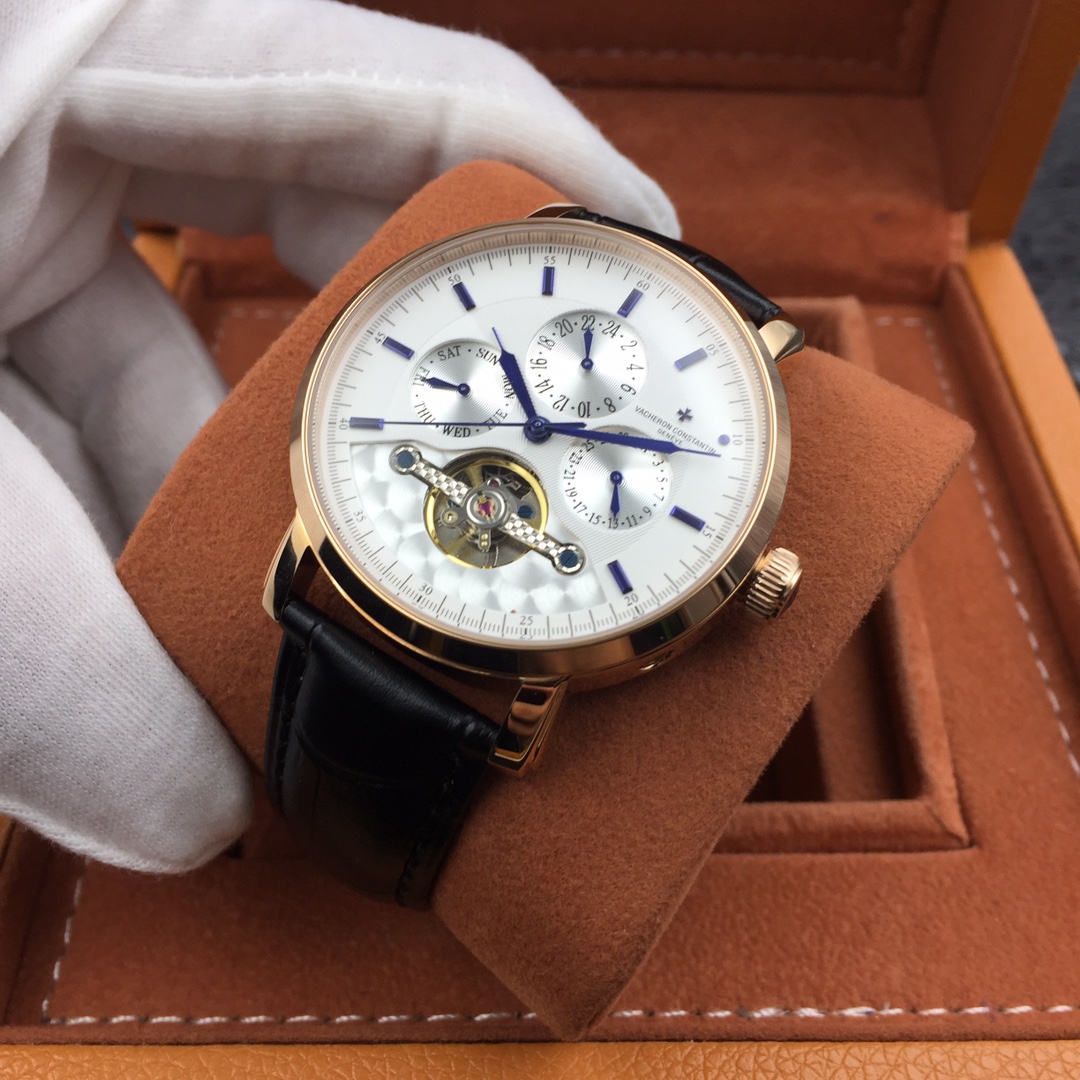 Vacheron Constantin is renowned for its exquisite design and exceptional watchmaking craftsmanship. With a diameter of 42mm and a thickness of 12mm, the watch showcases a medium-sized appearance that suits most men’s wrist sizes. It is equipped with an automatic movement, ensuring accurate and reliable timekeeping. The watch features hour, minute, and second functions, meeting the basic daily needs. The mineral crystal glass provides excellent transparency and scratch resistance, preserving the clarity of the dial. The watch is adorned with a fine buckle design, showcasing delicacy and a sense of luxury. The stainless steel case exhibits durability, a timeless aesthetic, and highlights the brand’s craftsmanship. Paired with a leather strap, it offers both comfort and style. Vacheron Constantin’s fine men’s watch captivates gentlemen with its elegant appearance and superb quality, bringing endless charm to those who appreciate refinement and taste.