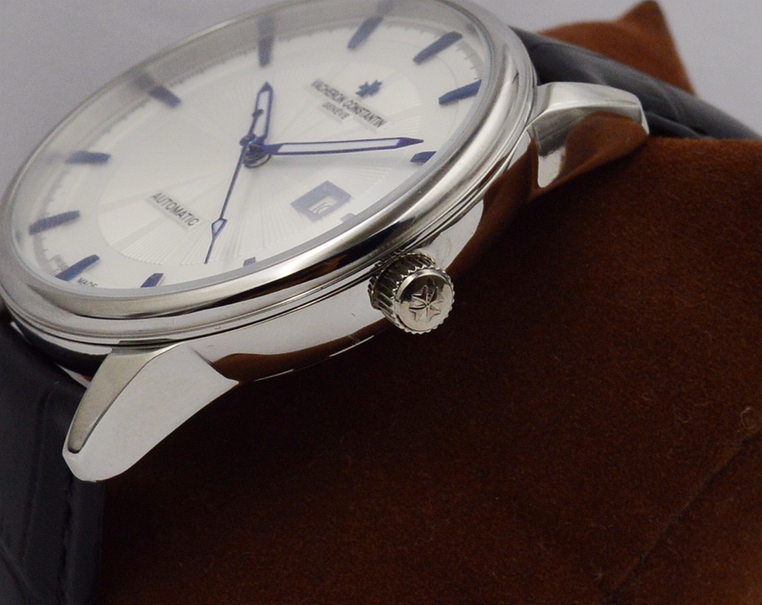 Vacheron Constantin is renowned for its exquisite design and exceptional watchmaking craftsmanship. With a diameter of 42mm and a thickness of 12mm, the watch showcases a medium-sized appearance that suits most men’s wrist sizes. It is equipped with an automatic movement, ensuring accurate and reliable timekeeping. The watch features hour, minute, and second functions, meeting the basic daily needs. The mineral crystal glass provides excellent transparency and scratch resistance, preserving the clarity of the dial. The watch is adorned with a fine buckle design, showcasing delicacy and a sense of luxury. The stainless steel case exhibits durability, a timeless aesthetic, and highlights the brand’s craftsmanship. Paired with a leather strap, it offers both comfort and style. Vacheron Constantin’s fine men’s watch captivates gentlemen with its elegant appearance and superb quality, bringing endless charm to those who appreciate refinement and taste.