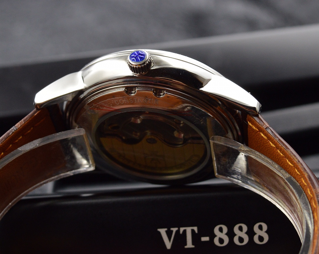 Vacheron Constantin is renowned for its exquisite design and exceptional watchmaking craftsmanship. With a diameter of 42mm and a thickness of 12mm, the watch showcases a medium-sized appearance that suits most men’s wrist sizes. It is equipped with an automatic movement, ensuring accurate and reliable timekeeping. The watch features hour, minute, and second functions, meeting the basic daily needs. The mineral crystal glass provides excellent transparency and scratch resistance, preserving the clarity of the dial. The watch is adorned with a fine buckle design, showcasing delicacy and a sense of luxury. The stainless steel case exhibits durability, a timeless aesthetic, and highlights the brand’s craftsmanship. Paired with a leather strap, it offers both comfort and style. Vacheron Constantin’s fine men’s watch captivates gentlemen with its elegant appearance and superb quality, bringing endless charm to those who appreciate refinement and taste.