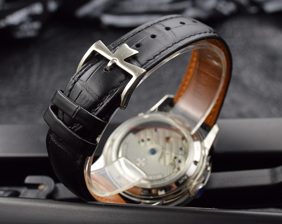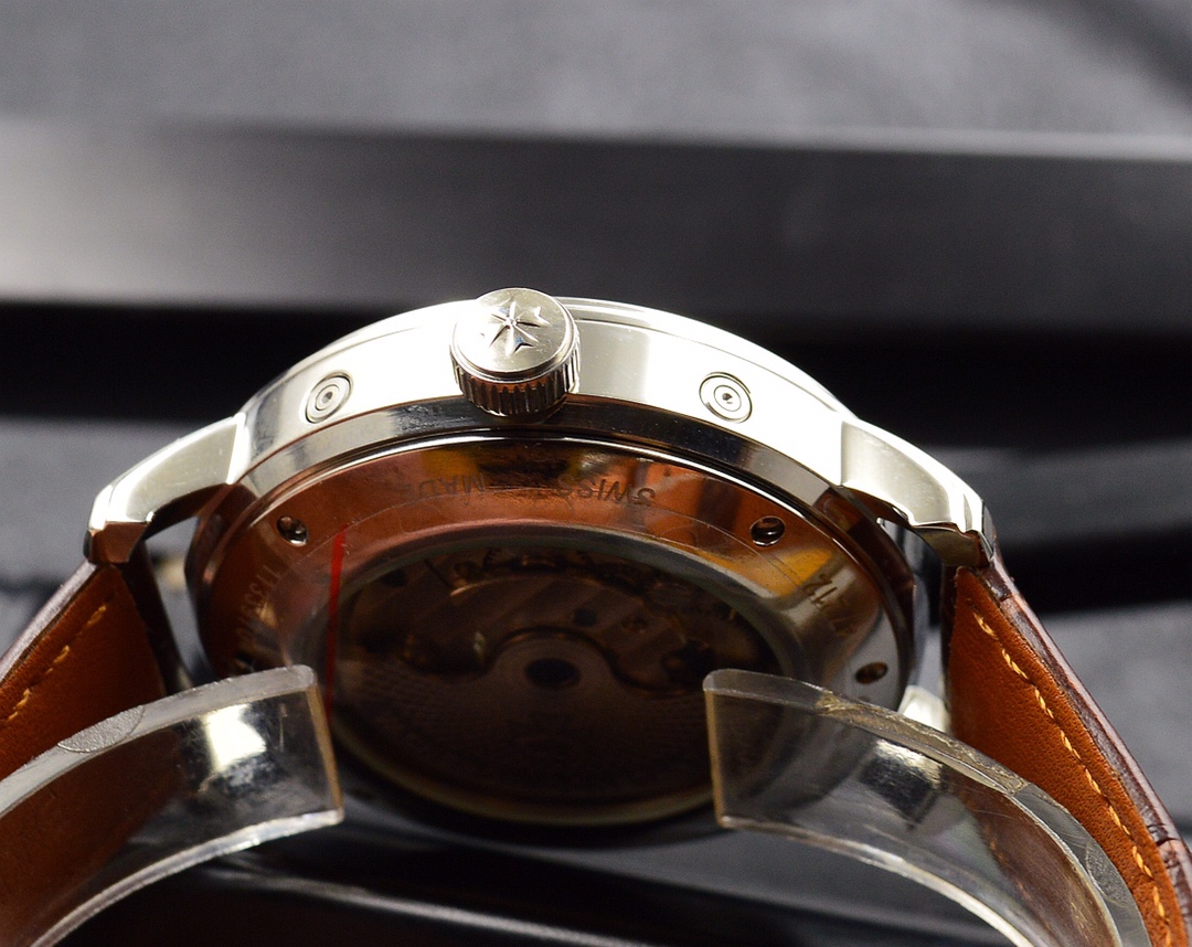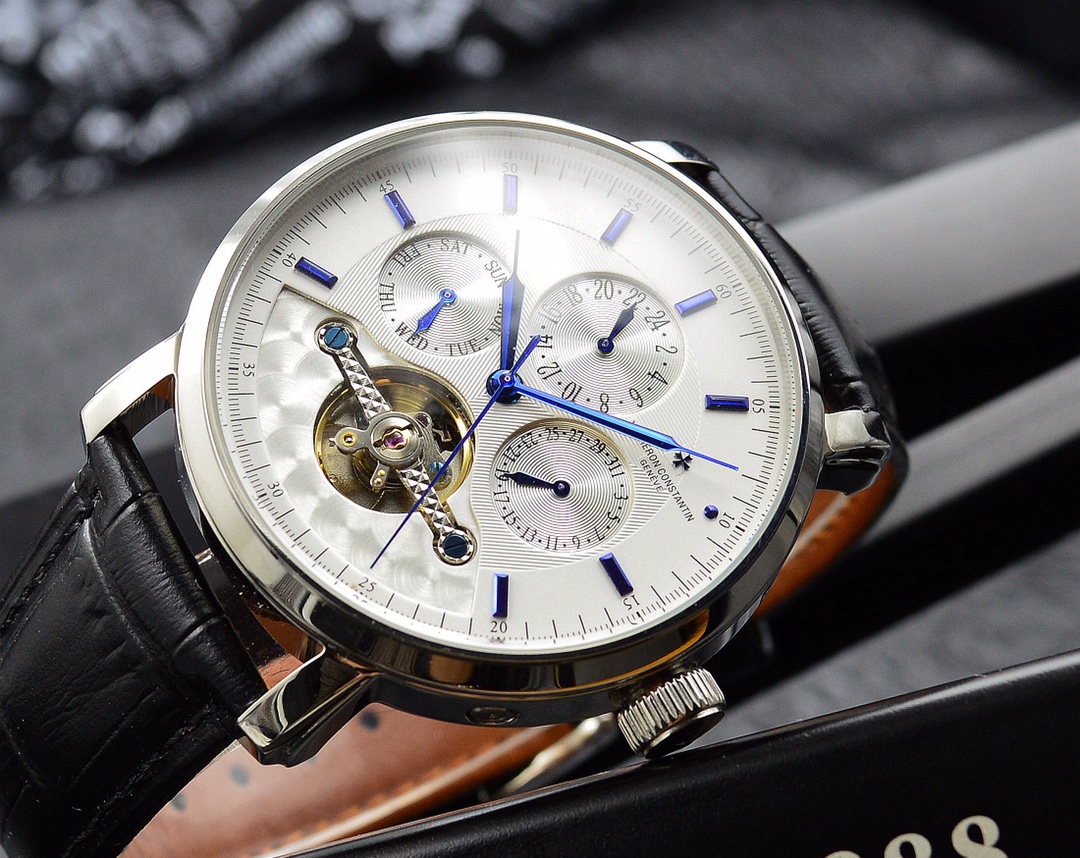 Vacheron Constantin is renowned for its exquisite design and exceptional watchmaking craftsmanship. With a diameter of 42mm and a thickness of 12mm, the watch showcases a medium-sized appearance that suits most men’s wrist sizes. It is equipped with an automatic movement, ensuring accurate and reliable timekeeping. The watch features hour, minute, and second functions, meeting the basic daily needs. The mineral crystal glass provides excellent transparency and scratch resistance, preserving the clarity of the dial. The watch is adorned with a fine buckle design, showcasing delicacy and a sense of luxury. The stainless steel case exhibits durability, a timeless aesthetic, and highlights the brand’s craftsmanship. Paired with a leather strap, it offers both comfort and style. Vacheron Constantin’s fine men’s watch captivates gentlemen with its elegant appearance and superb quality, bringing endless charm to those who appreciate refinement and taste.