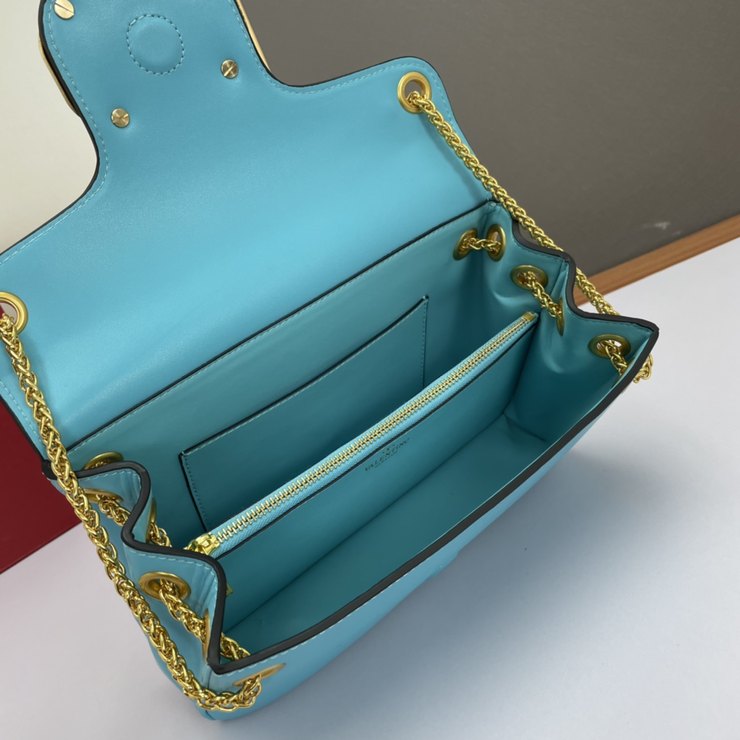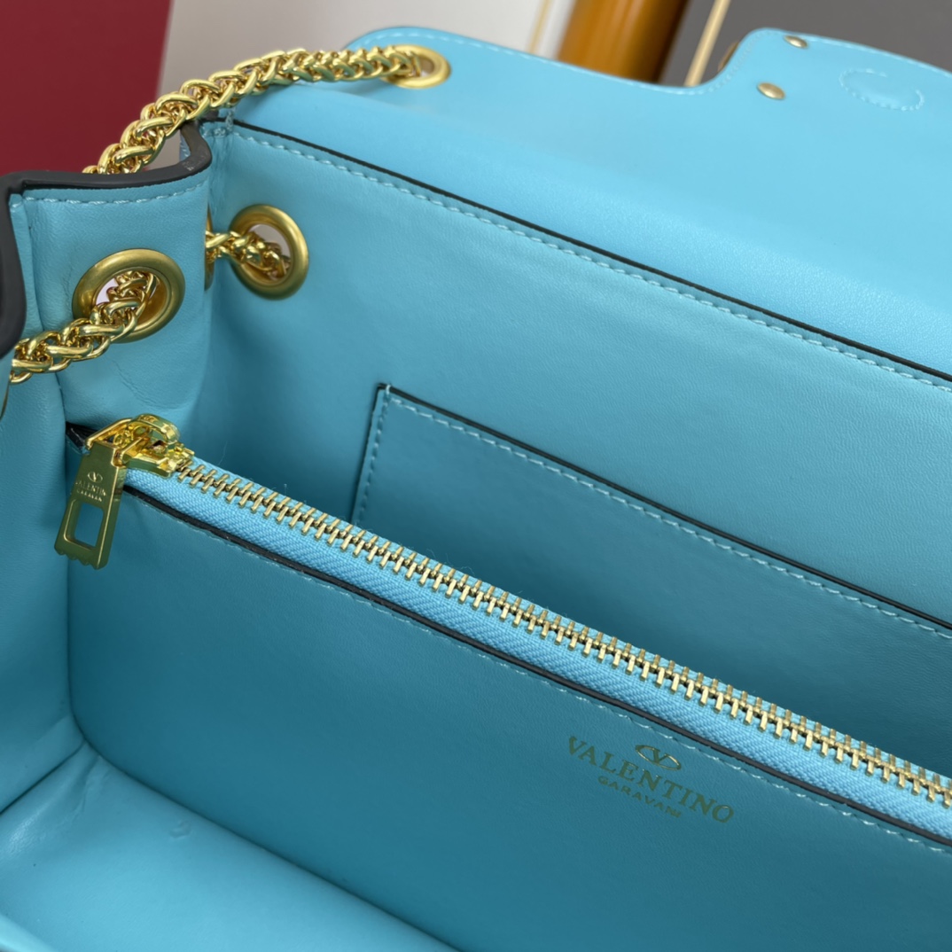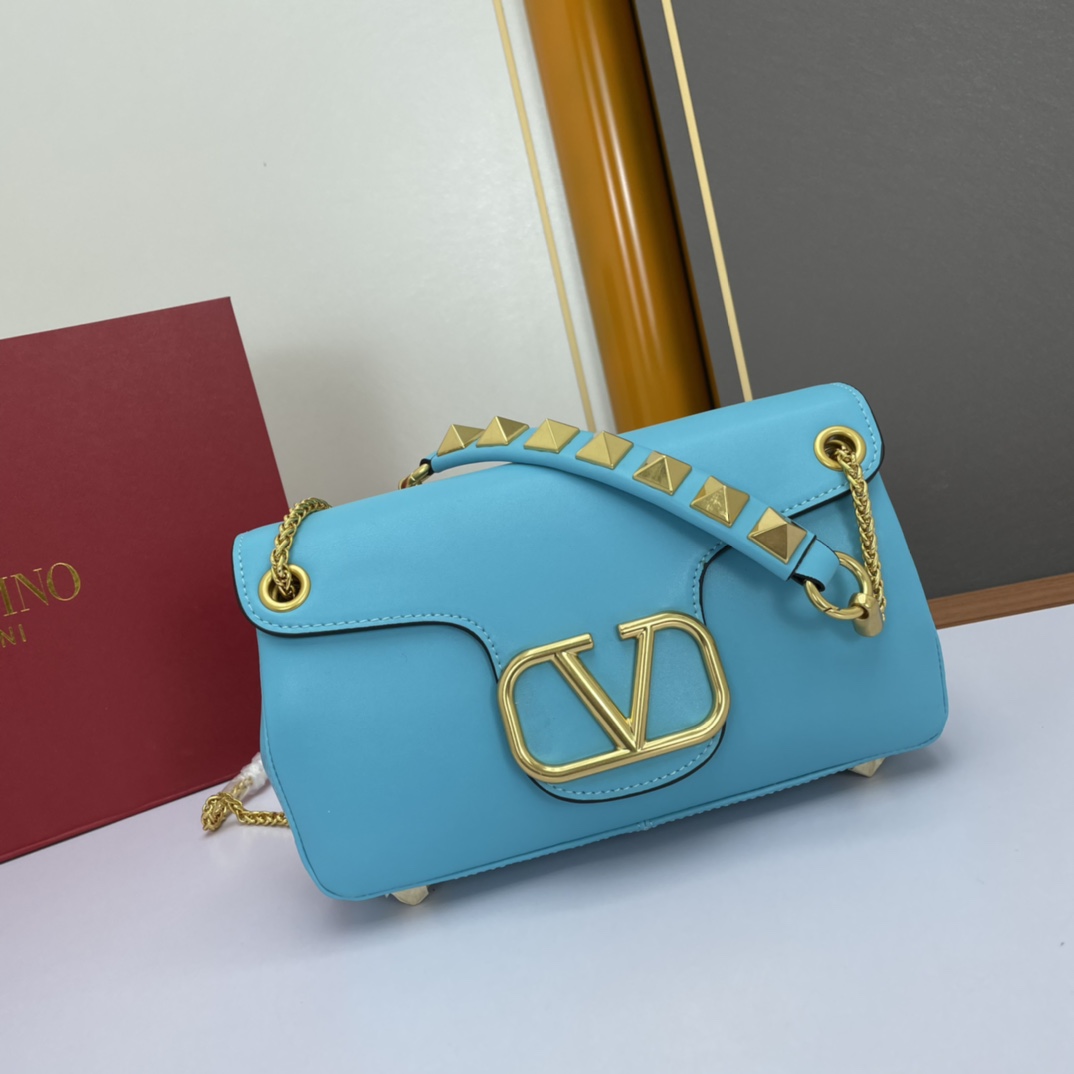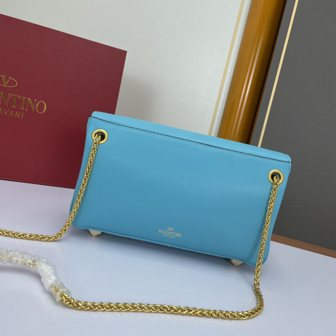 Valentino Garavani Stud Sign Soft Sheepskin Shoulder Bag with Decorative Metal VLogo Signature, featuring a chain shoulder strap with shoulder pad design and adorned with the iconic One Stud:
