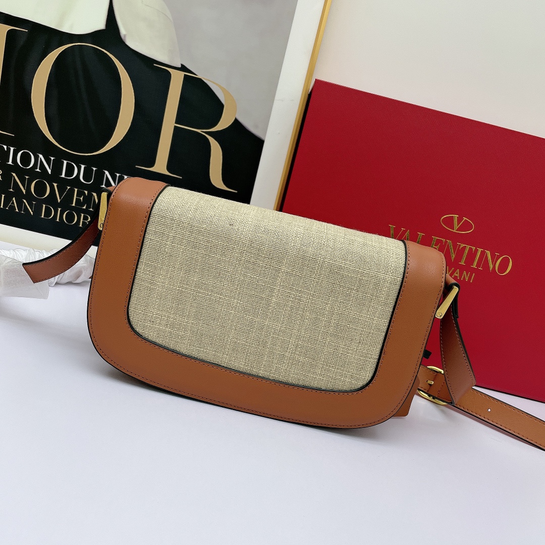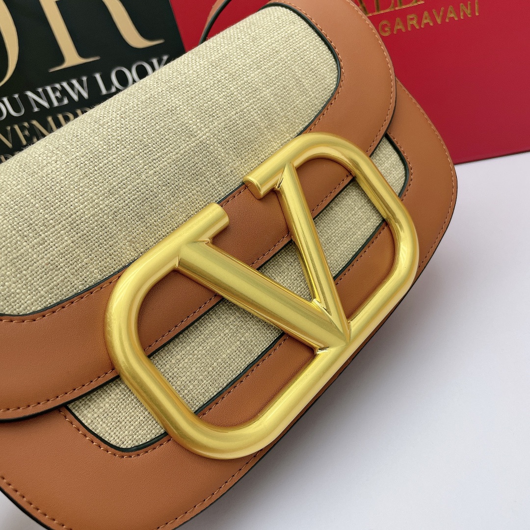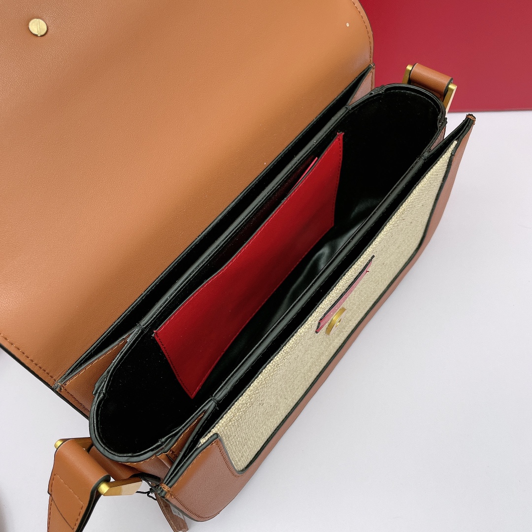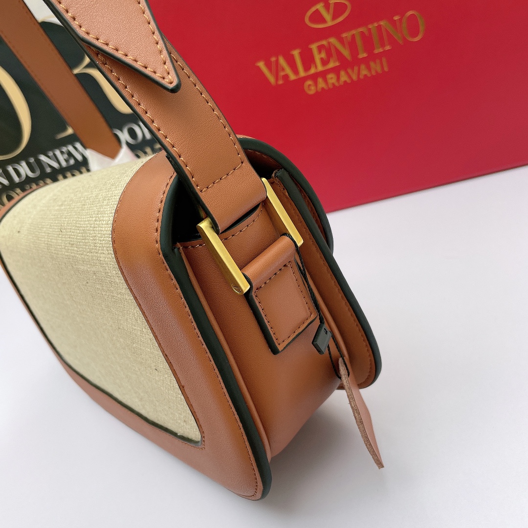 Valentino’s early spring runway collection features the Valentino Garavani MAXI Crossbody Bag, crafted from premium calf leather. The bag showcases a large metallic logo and comes with an adjustable shoulder strap. It is adorned with vacuum-plated metal hardware and a snap button closure. The interior boasts three storage compartments, one slip pocket, and ample capacity. The imported leather provides a soft and luxurious feel.