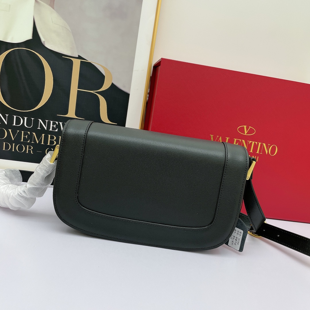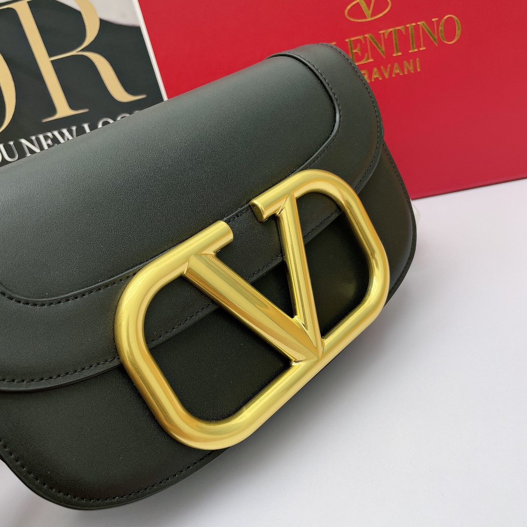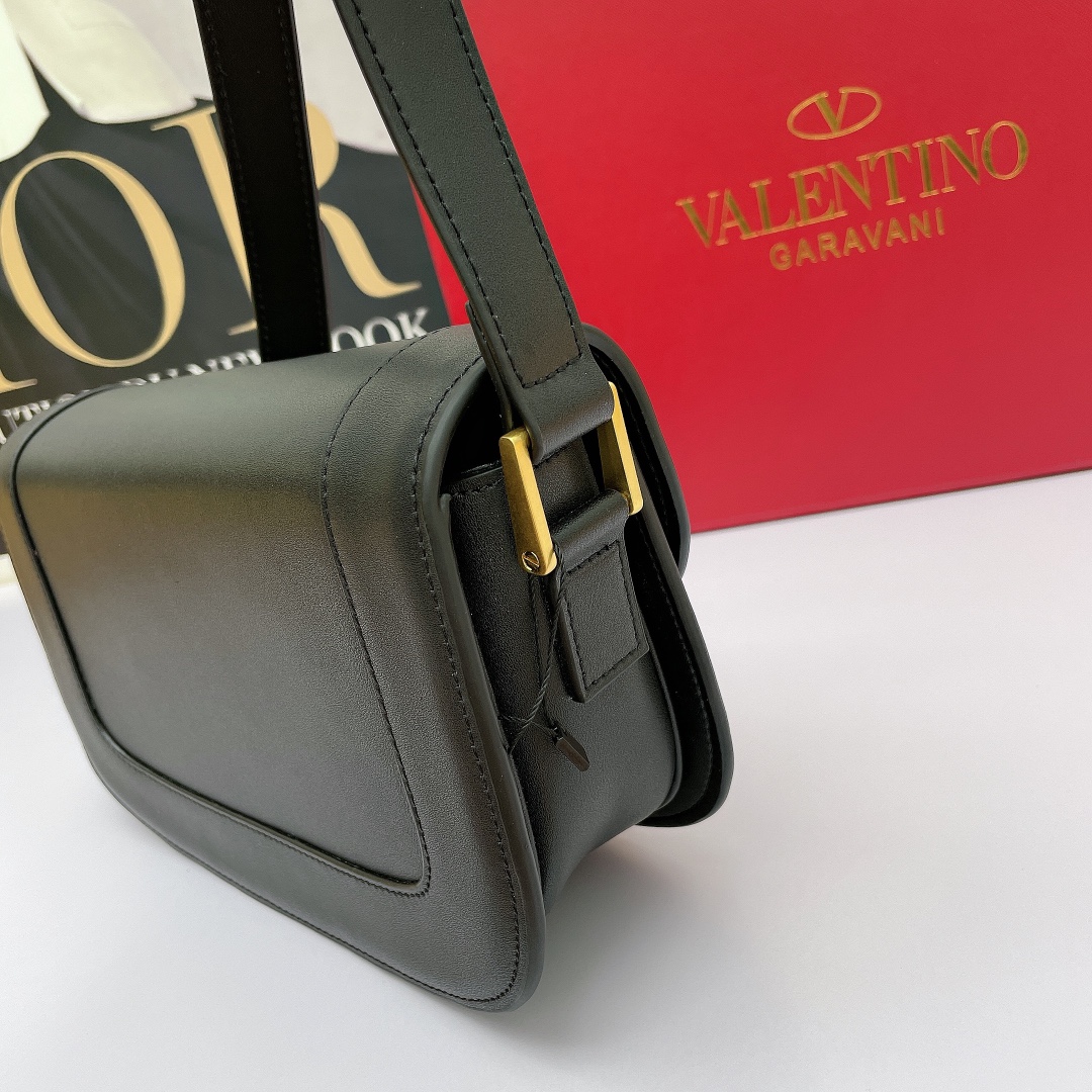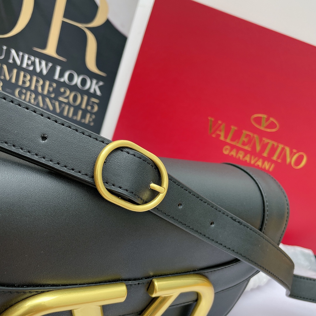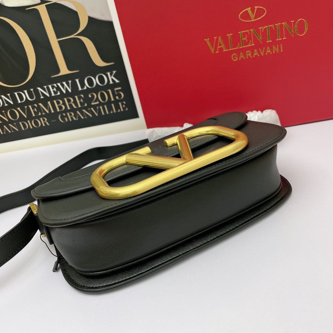 Valentino’s early spring runway collection features the Valentino Garavani MAXI Crossbody Bag, crafted from premium calf leather. The bag showcases a large metallic logo and comes with an adjustable shoulder strap. It is adorned with vacuum-plated metal hardware and a snap button closure. The interior boasts three storage compartments, one slip pocket, and ample capacity. The imported leather provides a soft and luxurious feel.
